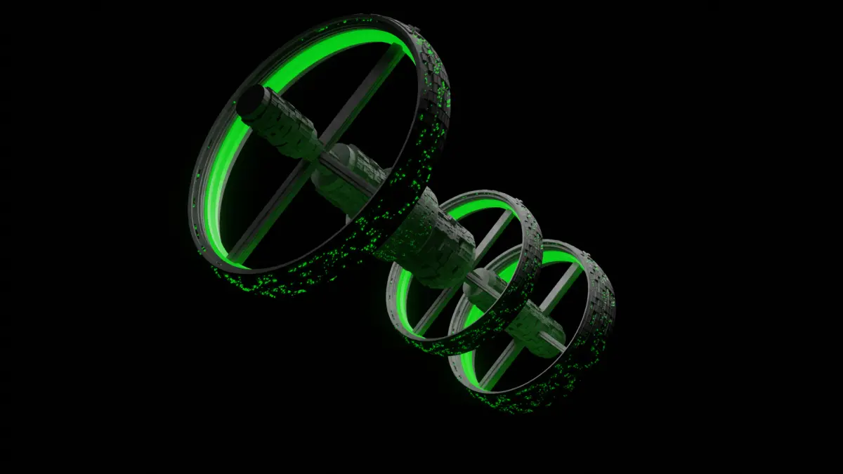It's a procedural space station, you can change the seed in the geometry nodes modifier. You can use it in any science fiction annimations, or space stories.You can also use it as a toy in a real life story.