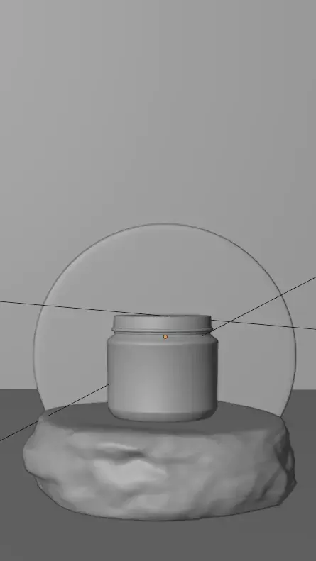 - Scene with rock, background, floor, lights, and camera.