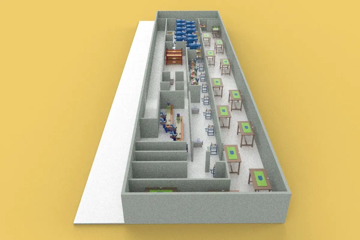 Improving production efficiency: Reducing wasted time and movement within the production process.Minimizing production costs: Optimizing space usage and material handling.Enhancing worker safety and well-being: Designing a layout that minimizes safety hazards and promotes comfortable working conditions.