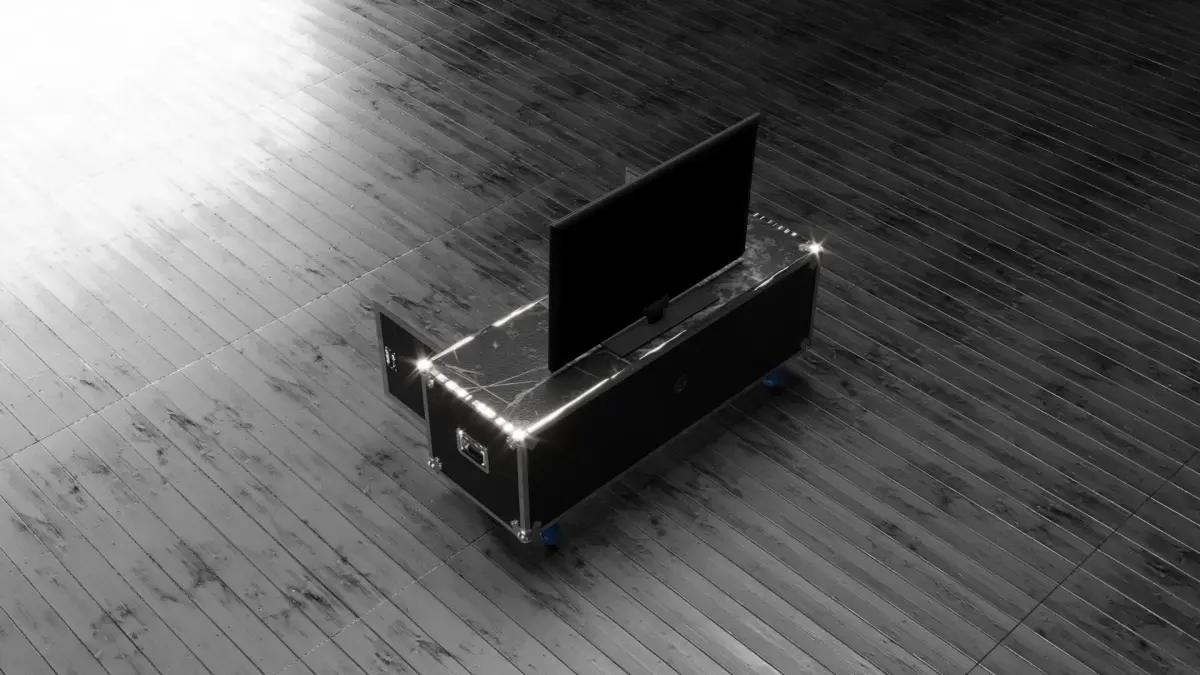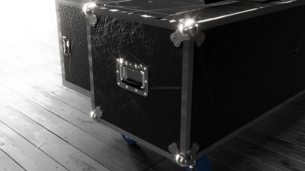 This is a detailed low-poly 3D model of a professional flight case, commonly used to safely transport audio, lighting, video, or fragile equipment for events, concerts, and touring.