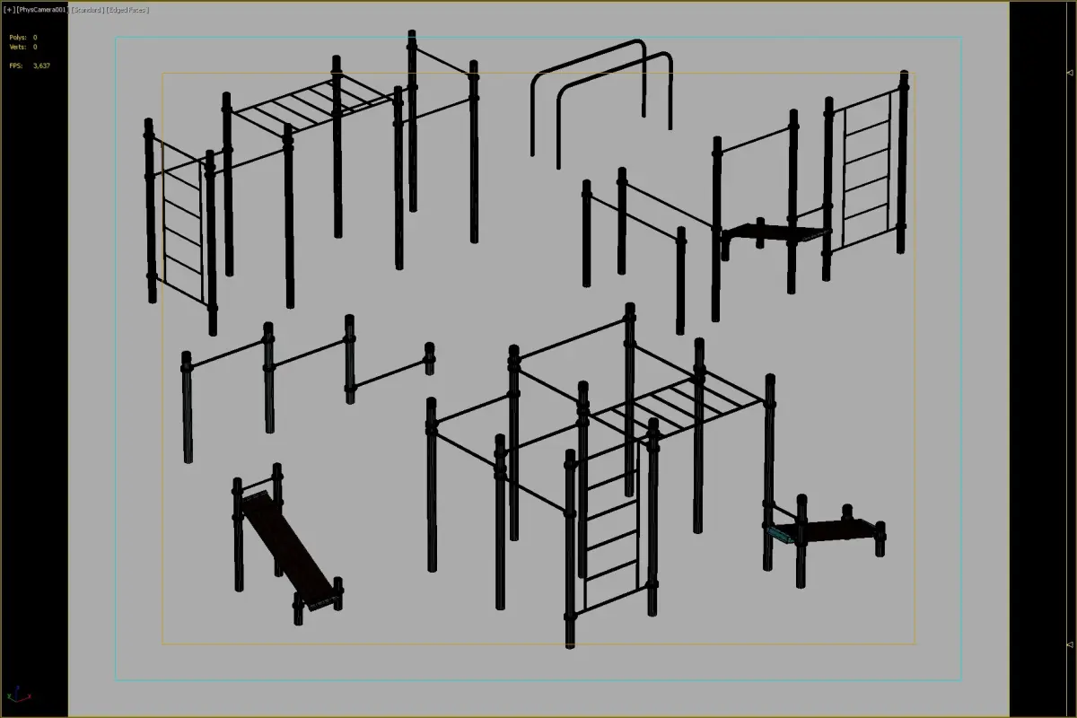 A comprehensive collection of outdoor workout equipment for strength and endurance training. Perfect for fitness parks, schools, and public workout spaces.