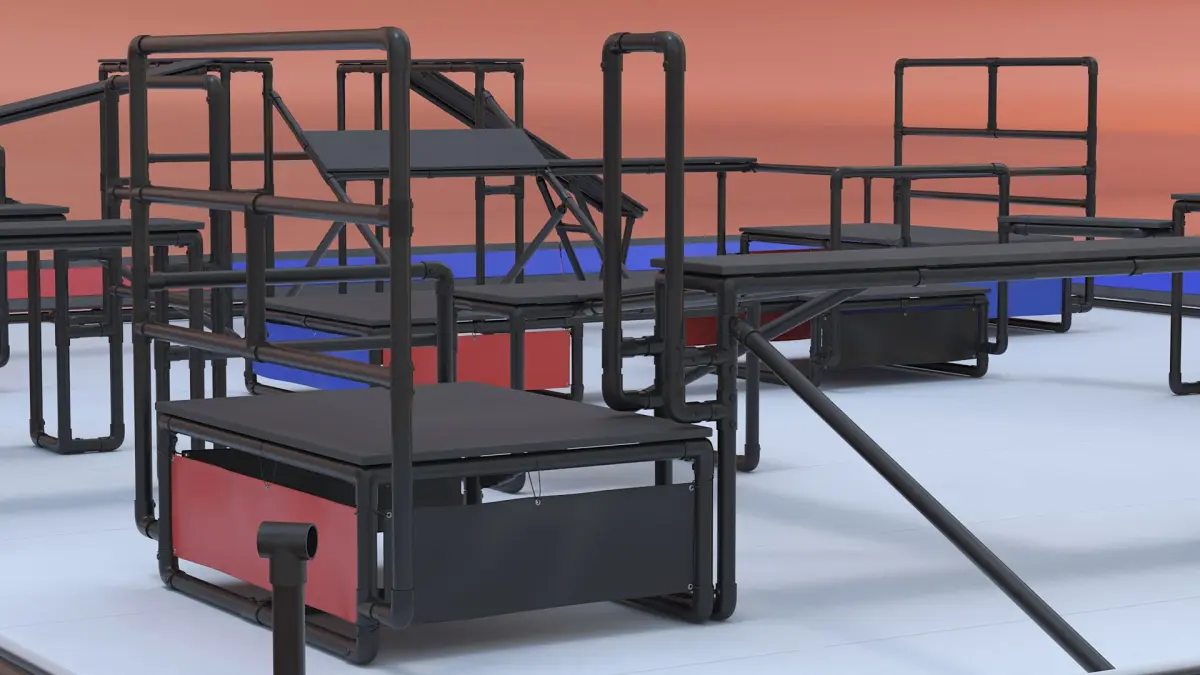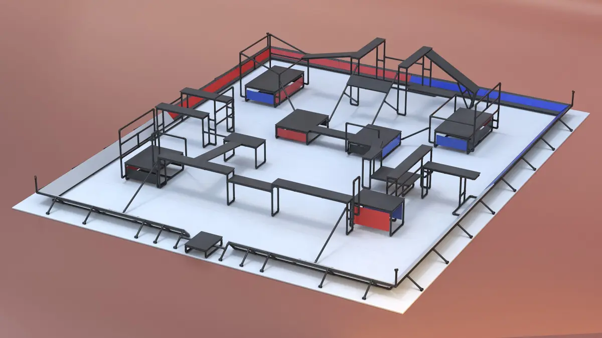 Designed as a chase tag playing arena, this parkour obstacle course offers diverse challenges with walls, vaults, ramps, and more. Participants must use their agility and strength to navigate the dynamic landscape, either escaping from or chasing their opponents. The course is structured to test reflexes, speed, and creativity, with obstacles that require quick thinking and efficient movement. As the game progresses, the terrain becomes more complex, ensuring no two rounds are the same.