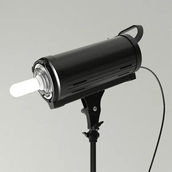 Detailed 3D model of a professional studio strobe with stative and beauty dish, modelled in Blender 2.72 and rendered in Cycles. Exported in .3ds and .obj and perfectly working with subdivision surfaces modifiers such as Meshsmooth. Materials only works in Blender but texture still usefull in othe formats.