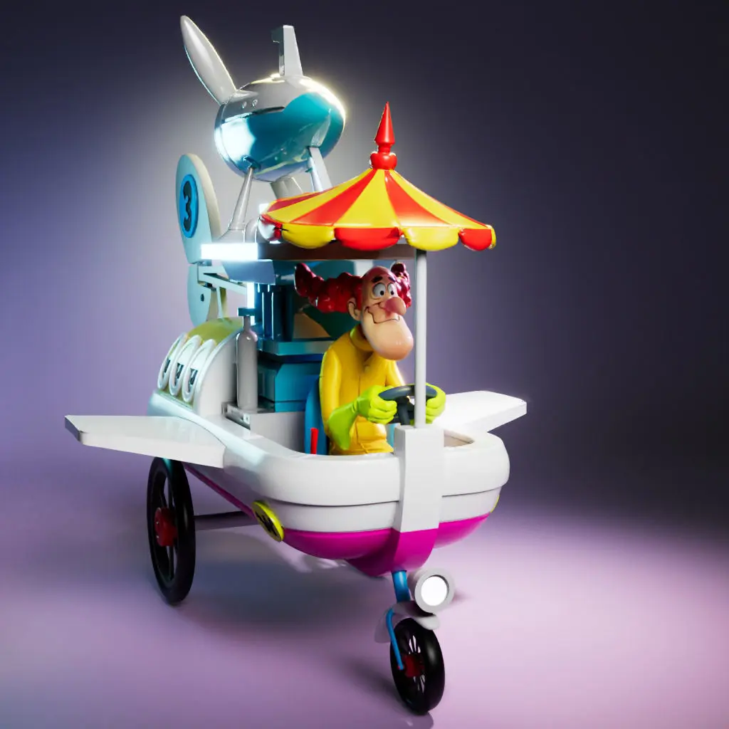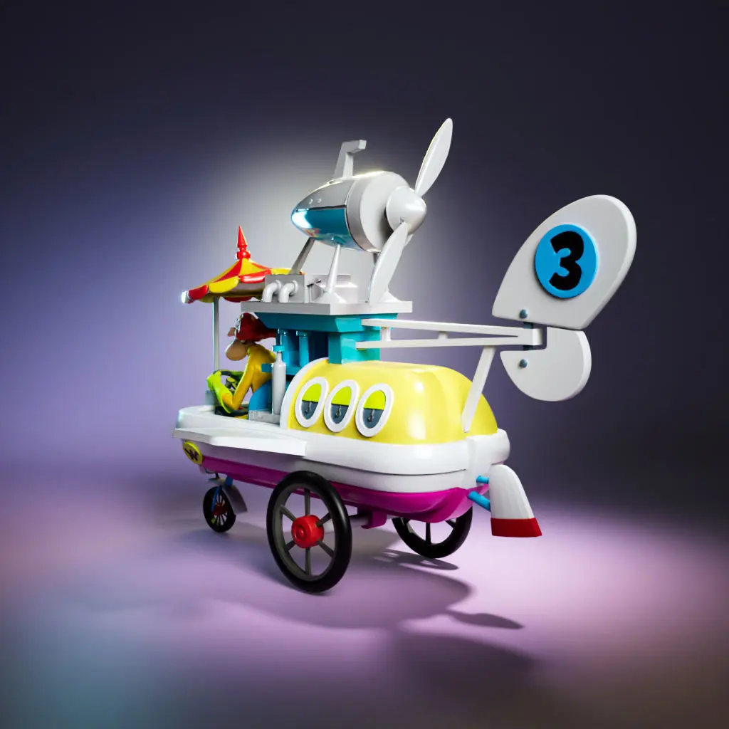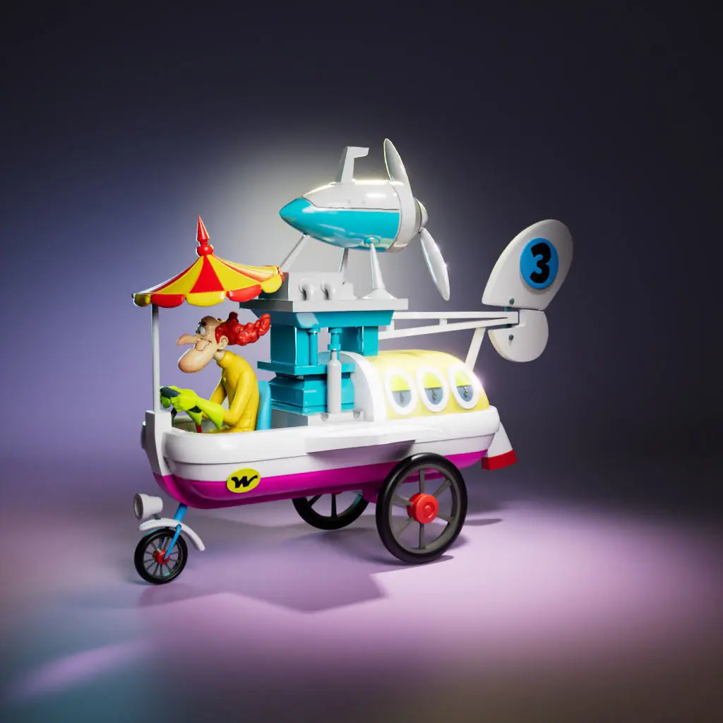 Another one from the Wacky Races! And with several parts to print. 18 cm in total height.Attention: these are stl files for 3d printing, and has no colors.