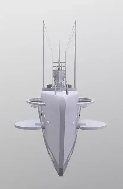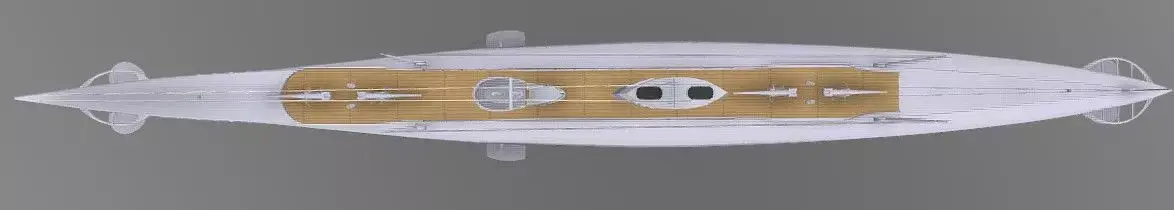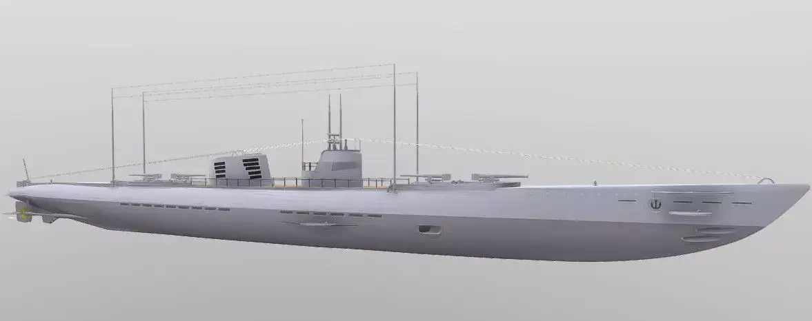 Project 50 was a late WW1 German design for a submarine which would carry 4 - 150mm guns, and possessed 10 torpedo tubes, which for its time was very impressive. For propulsion, steam turbines were used instead of diesel engines. In terms of size it sits at around 125 meters long and almost 12 meters wide, making it a massive submarine for its time. For comparison U-65 sits at around 70m in length and 6.6 meters wide. Ultimately no iteration of this design was even laid down during WW1 or the interwar years.