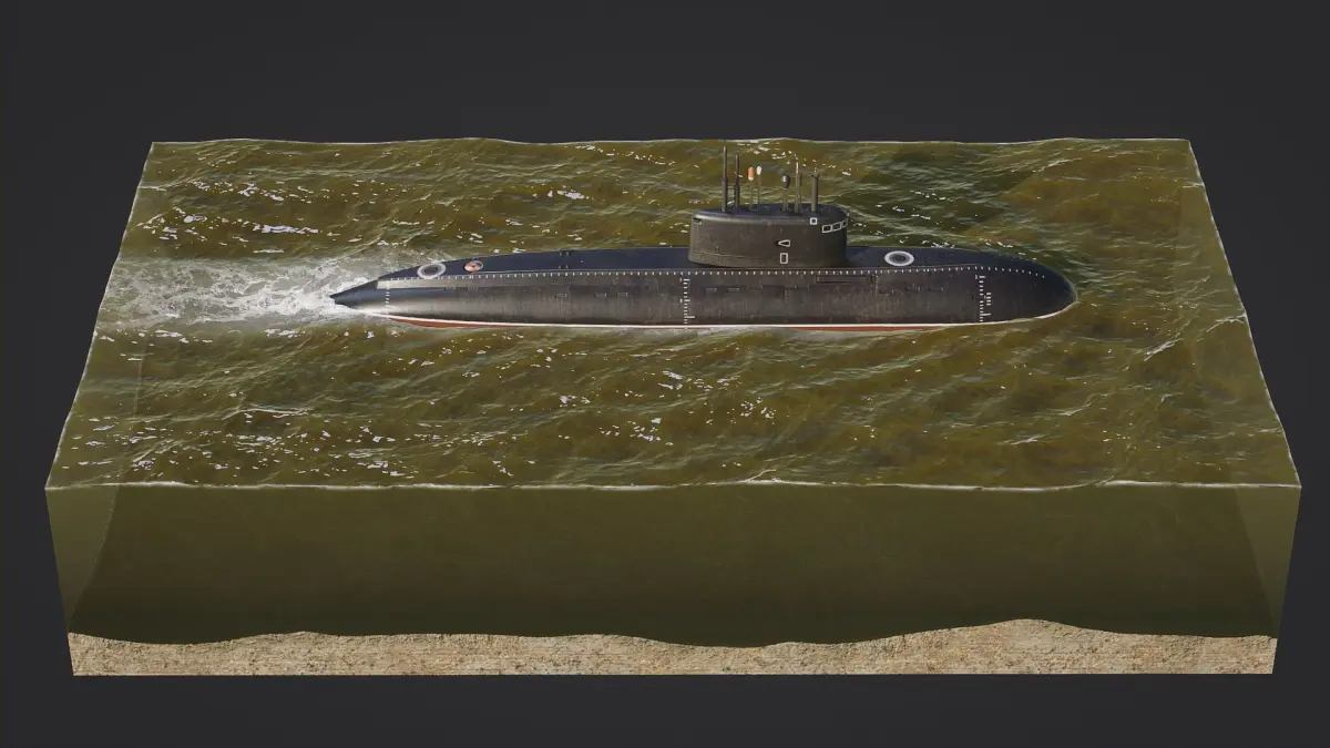 Low poly model of Multi-Purpose Diesel-Electric Submarine of the project 636.3 Varshavyanka.