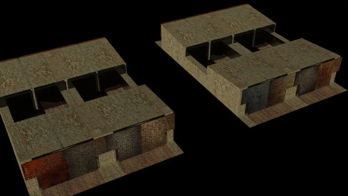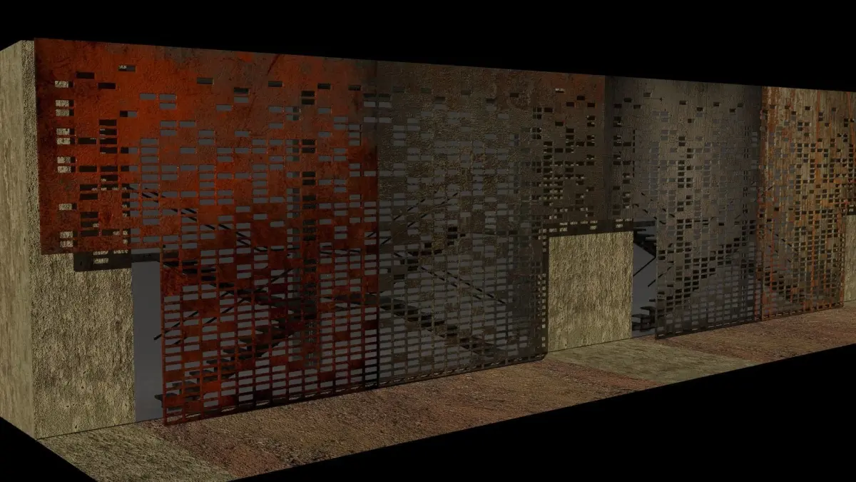 Model of row housing. With no equipment inside. Elevation made of steel / Corten etc. Guruware Ivy plugin used.