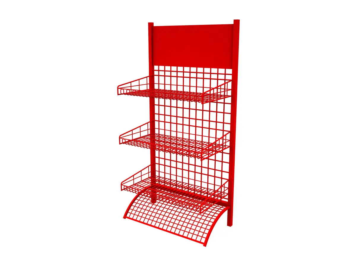 Metal promotional display racks with shelving for supermarket is modeled 3ds max 2014 and rendered vray 3.0Texture was not usedModel dimension: width 76 cm, length 43 cm, height 150 cm
