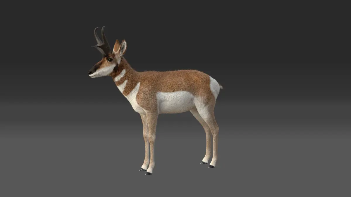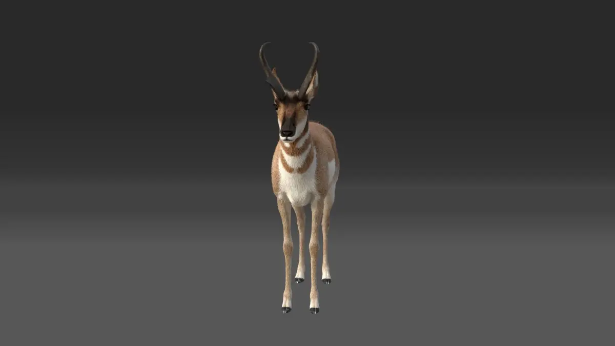 This is a realistic female pronghorn with multiple 4K maps, fur, rigging, and animation. This model is made with Blender 2.81 and rendered by Cycles renderer.