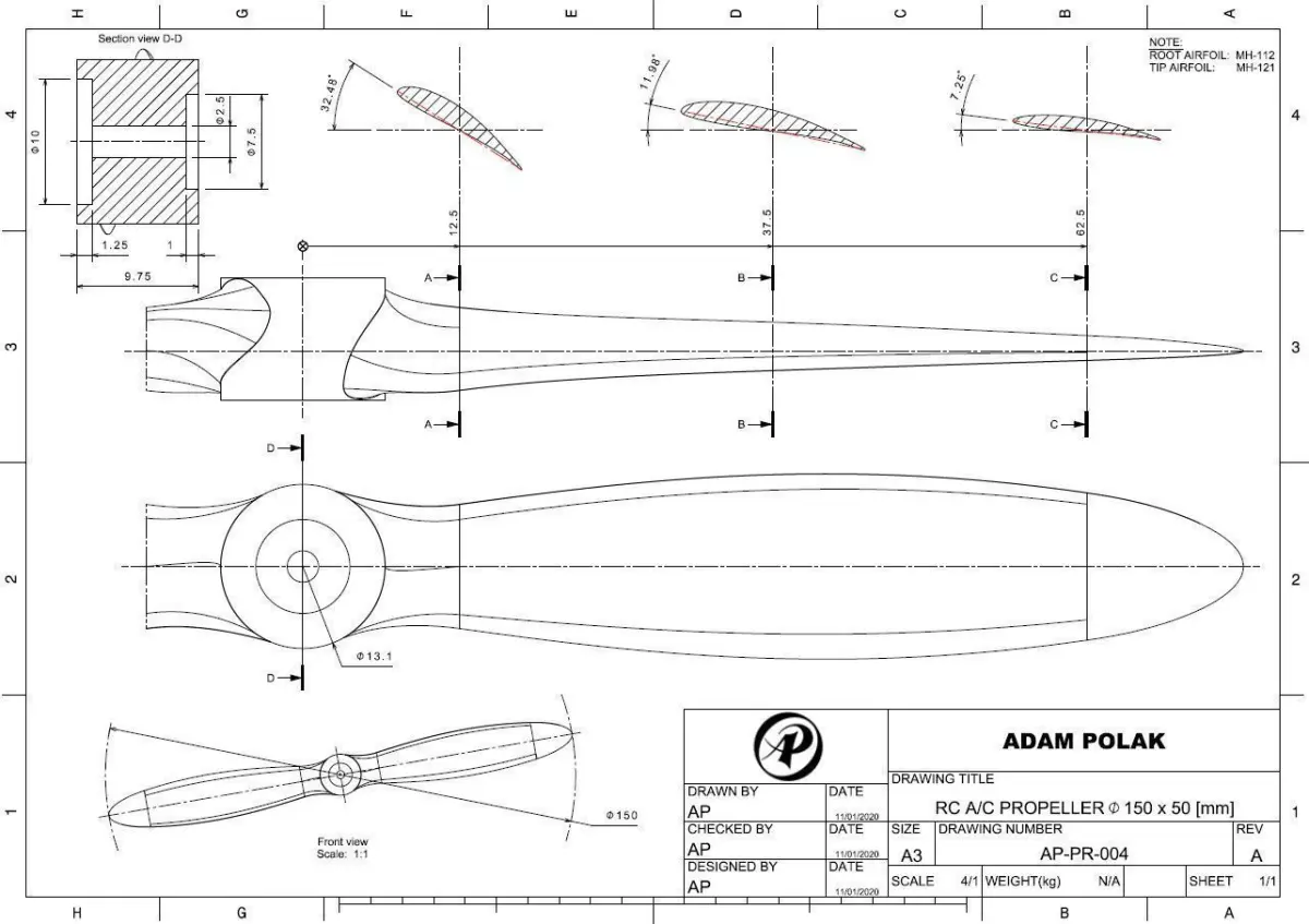 This is a set of four propellers with two and three blades (RH & LH rotation) with blade design AP-PR-004. (see attached drawing and presentation for blade and hub design)