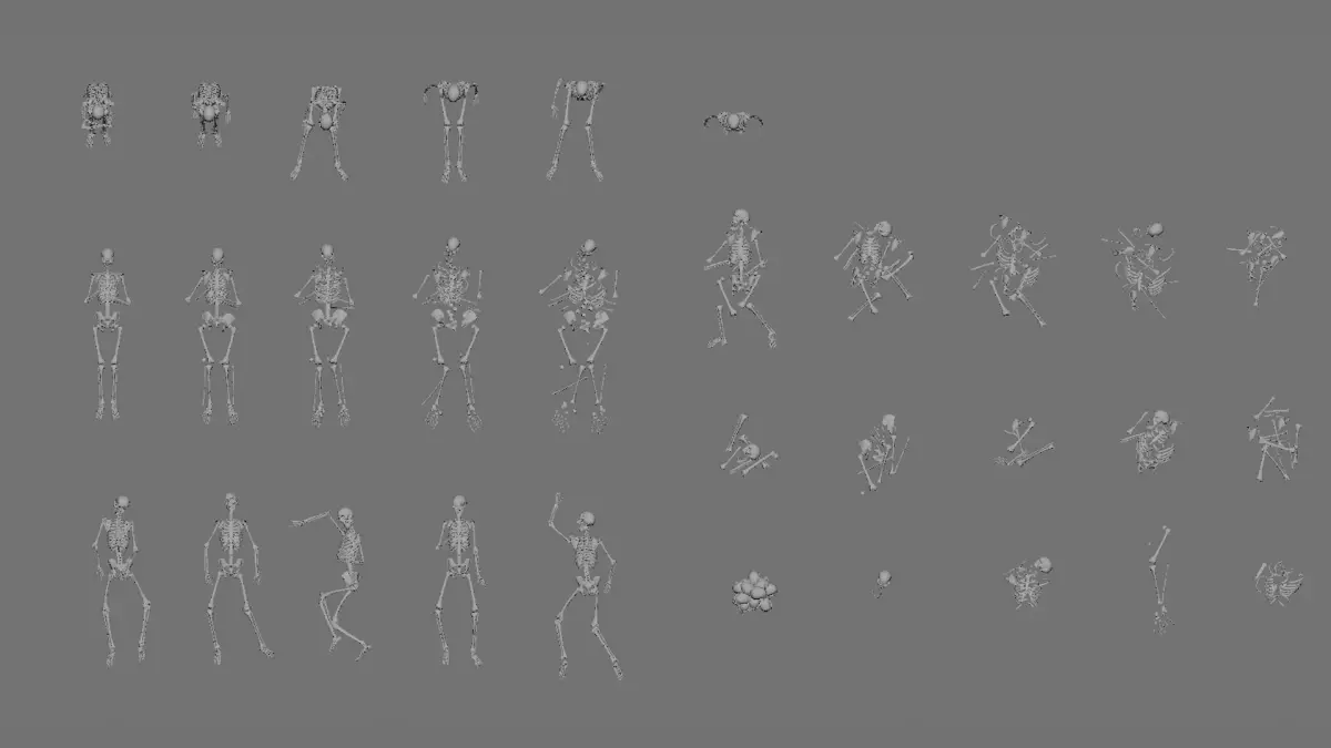 30 pack human skeleton remains + 1 base human skeleton ( FBX, MA, MAX, ZTL, BLENDER, GLTF, GLB, USDZ, USD )