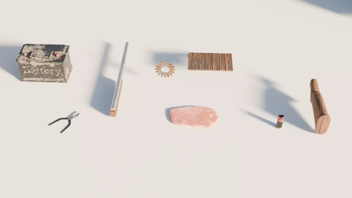 10 props made for the game and fully ready to be uploaded to the engineThere are FBX files for both individual props and all together1 texture pack 4096x409662.982 tris for all modelsMade in intermediate polygonality between Low-Poly and Mid-PolyThere are such props as a kitchen set, table, battery, pliers, meat, etc.Suitable for both mobile and computer games