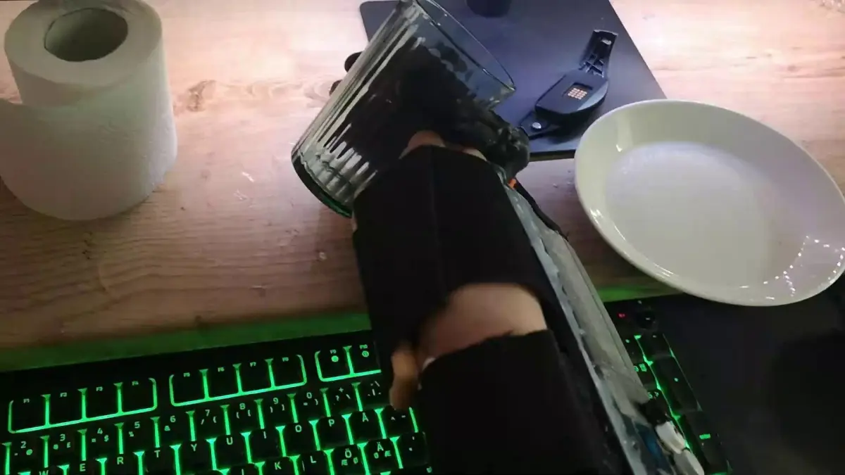 Hot glue the servo in it's place and check that the arm moves properly before adding glue. Do the same for buttons and monitor which are in the top cover. Though depending if you have finalized the wiring and wires are already attached, you might first want to do the fishing rope stuff before attaching the cover shield to the wrist part.