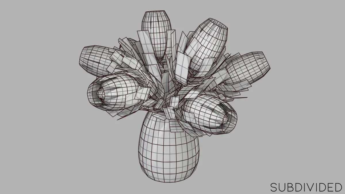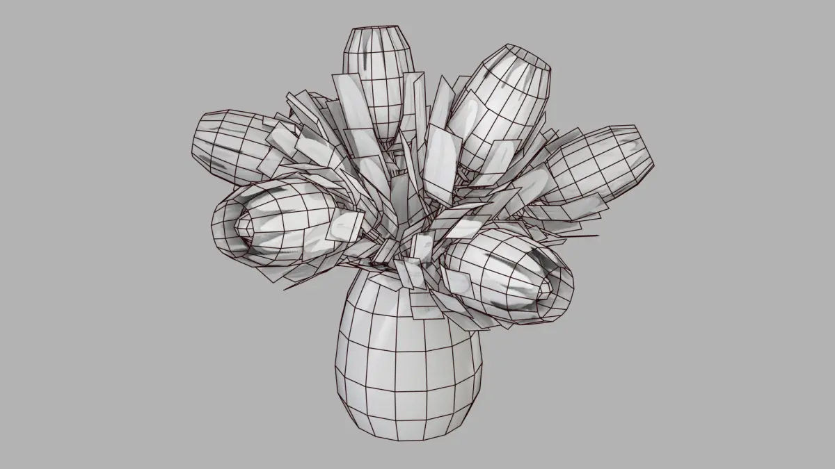 Pink ice protea bouquet in a generic vase. Relatively low poly but can be subdivided for a smoother look. Tested in unity. Texture variants included for vase. Unwrapped, non-overlapping UVs.