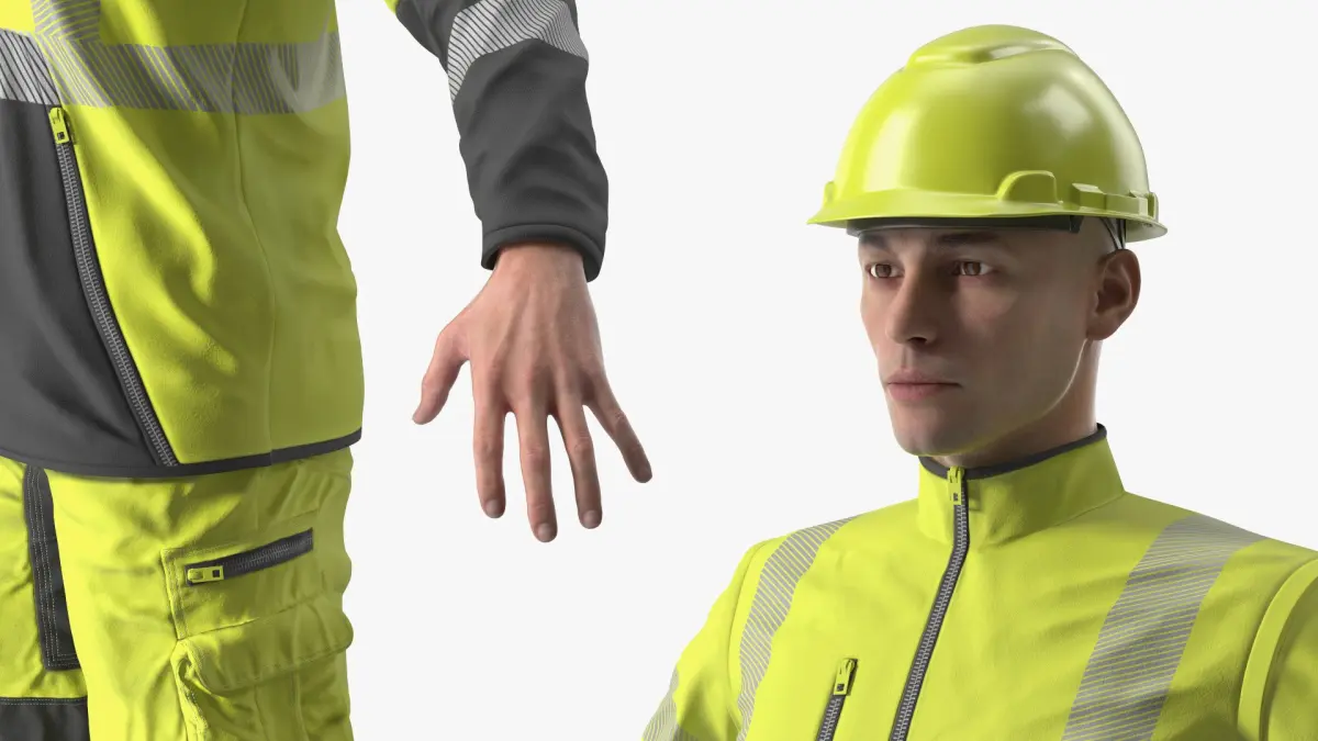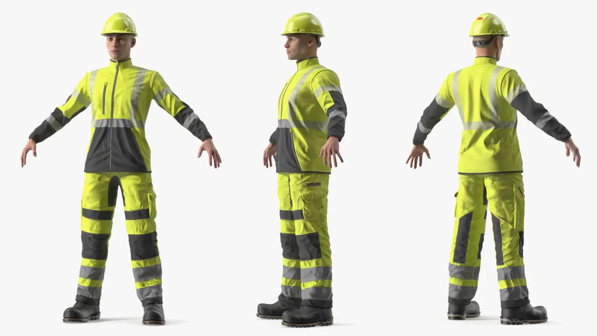 Protective Summer Workwear Clothing on Man Yellow is a three-dimensional model of protective clothing designed for individuals working in hazardous environments where increased visibility is crucial.