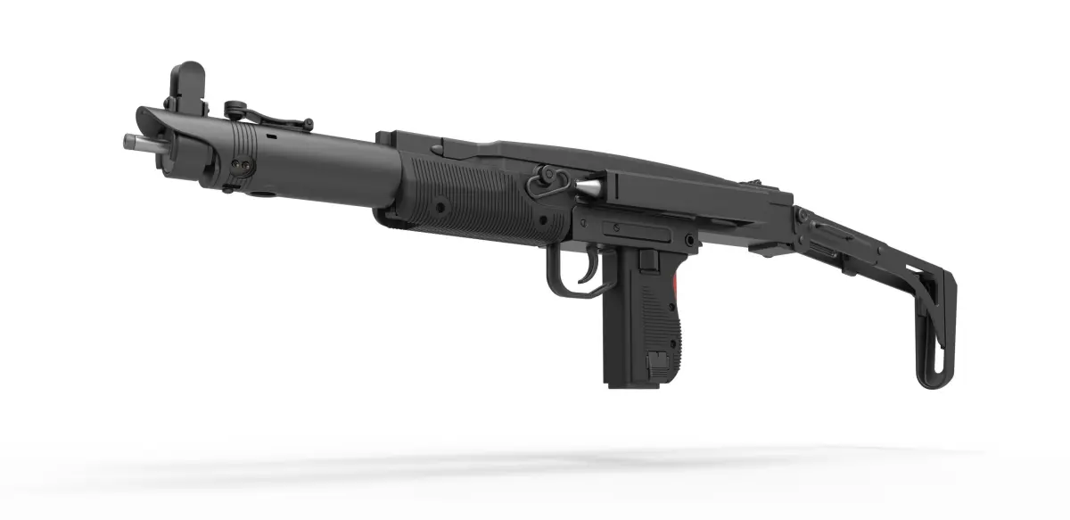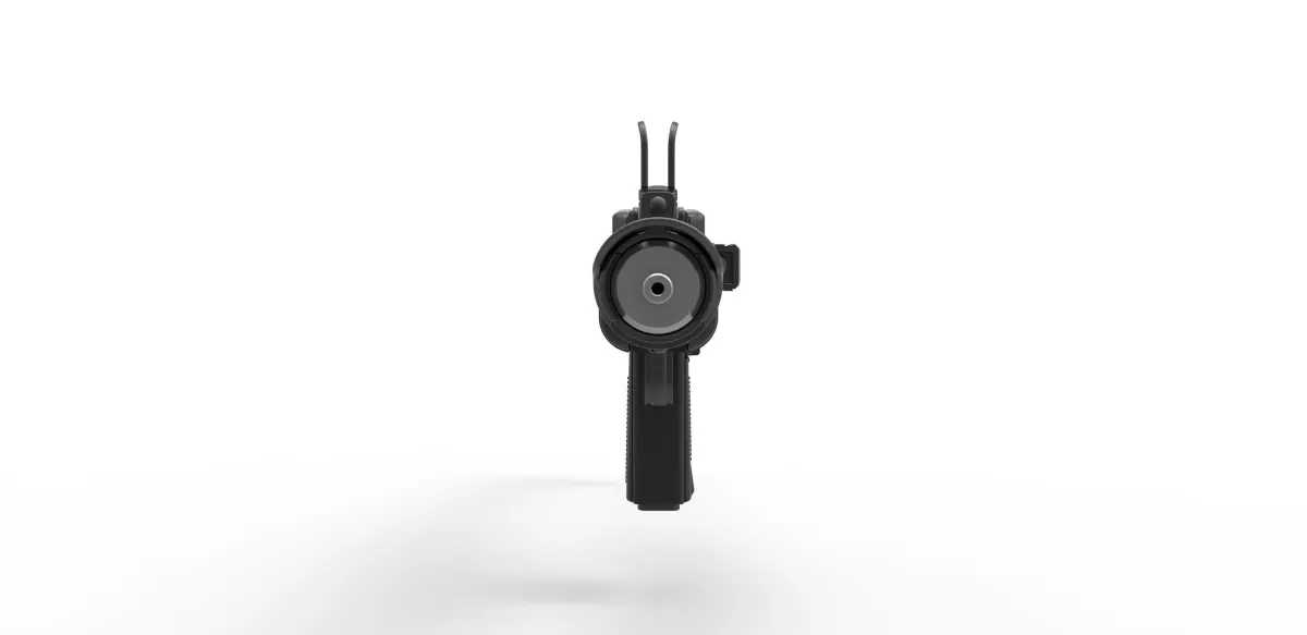The main part of the prototype blaster was made from the UZI submachine gun. The barrel was made from the Top half of the Graflex 3 Cell flash. The prop’s rubber body does not have many details and element from the original UZI. That is why I’ve added them to my model.