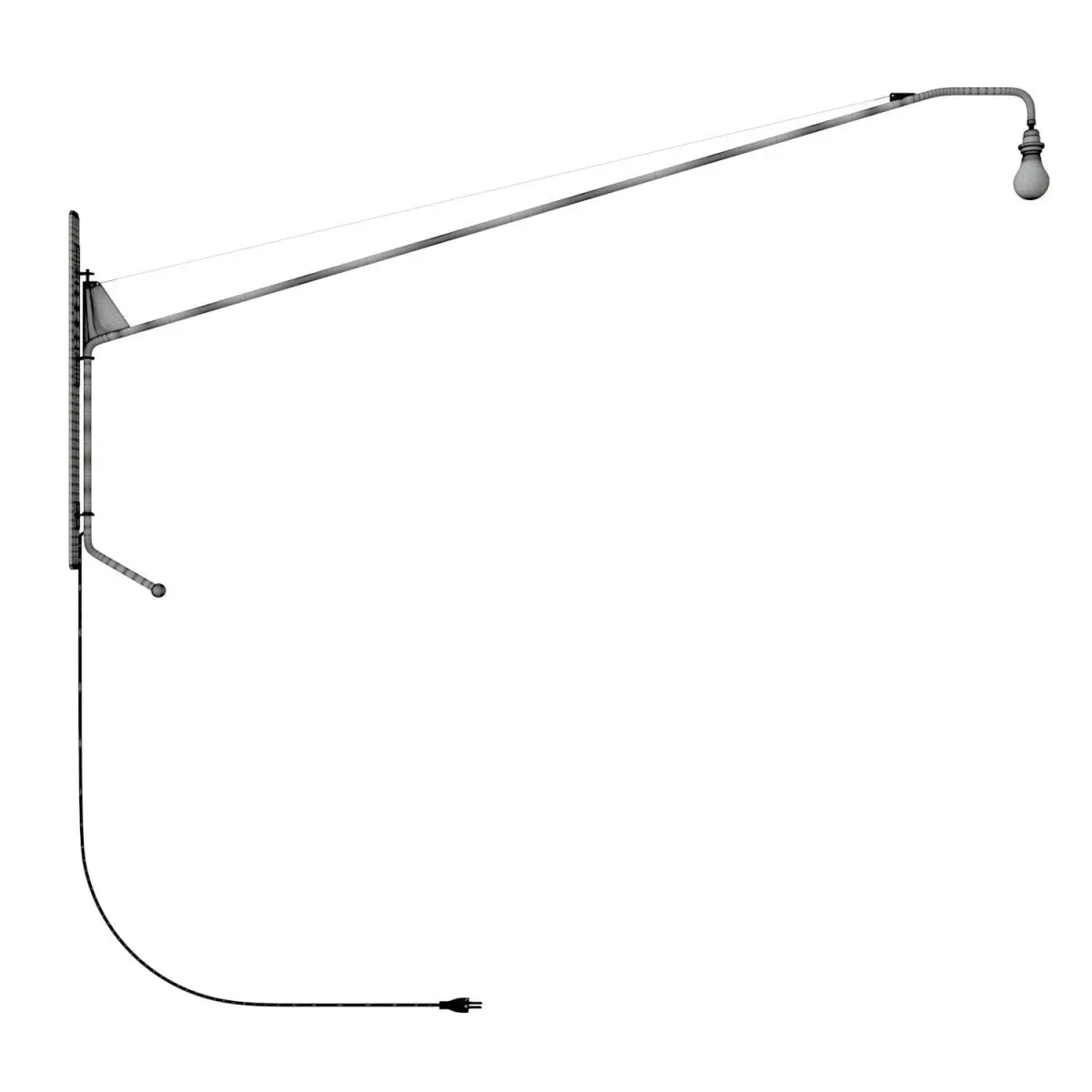 Designed by Jean Prouvé for his own groundbreaking La Maison Tropicale, the Potence Lamp (1950) provides a unique solution for suspension lighting with its ingenious engineering and elegant form. Consisting of a single metal rod that extends almost seven feet from a wall-mounted vertical bracket, this base-free lamp saves valuable floor space. A simple handle with wood knob moves the entire lamp laterally to illuminate a 180-degree range of space, and an on-cord dimmer switch allows easy light adjustment. Bulb (included): 14W/G25/E26 CFL. UL Listed. Reproduced to exacting standards by Vitra. Made in Germany.