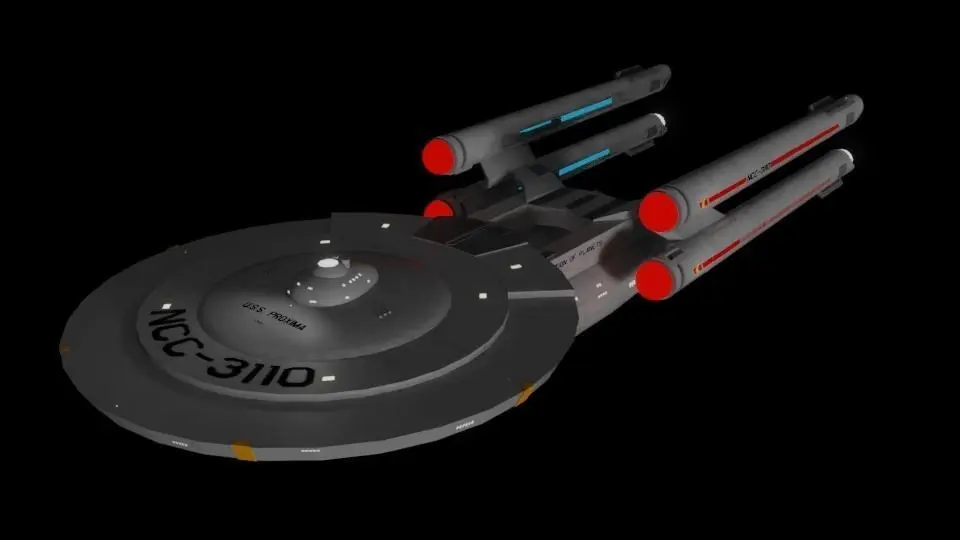 Length: 587 metersDecks: 19Crew: 1,249Maximum Speed: Warp 8.2Cruising Speed: Warp 7.4Armaments: Phasers, Photon TorpedosAuxilary Craft: Federation Shuttlecraft