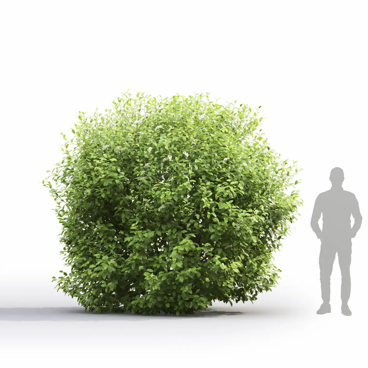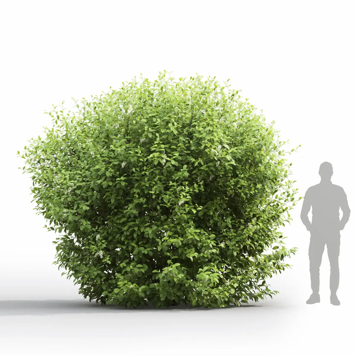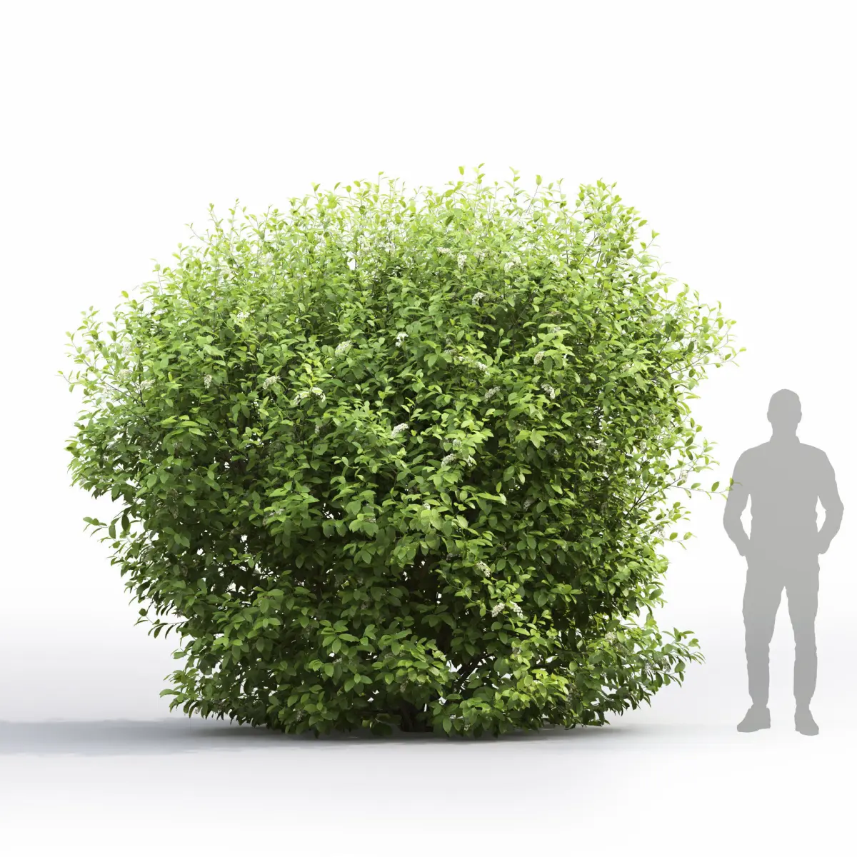 There are 2 flowering bird cherry (Prunus padus) bushes in the scene
