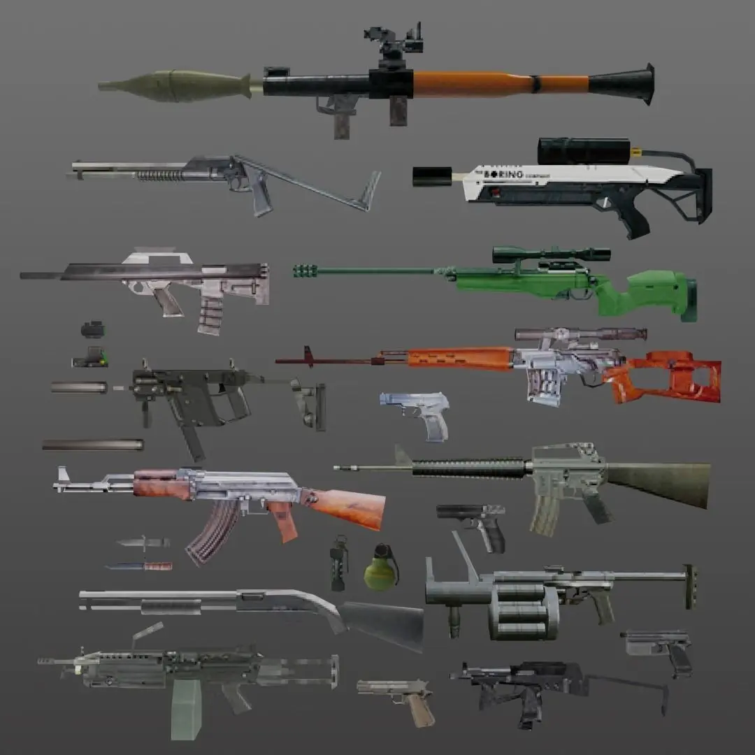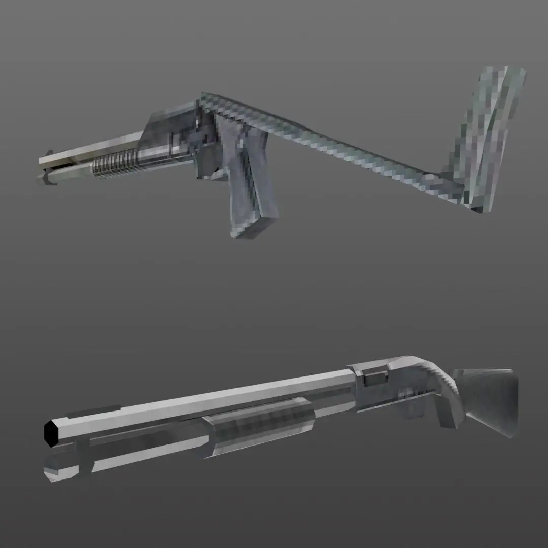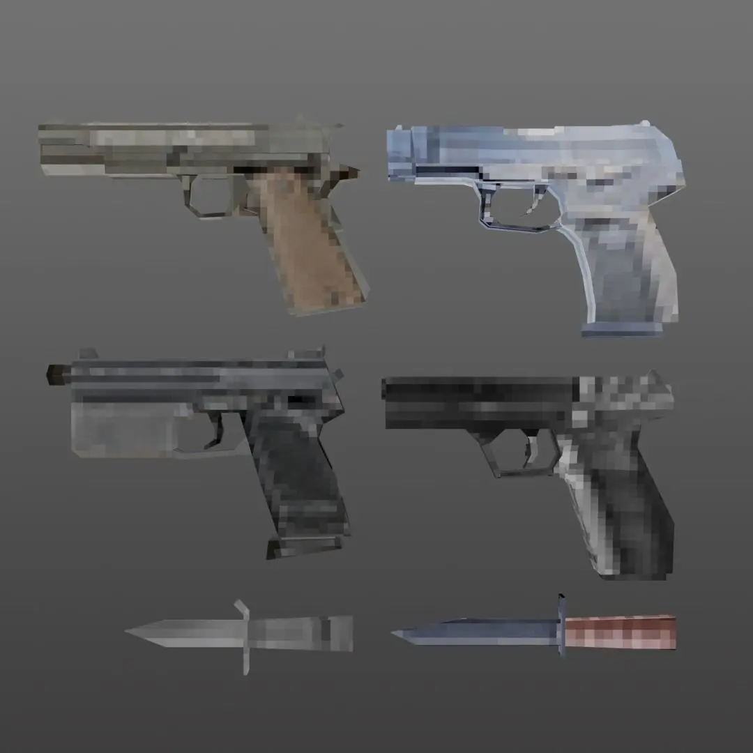 ##This is a ps1 style low poly weapon pack Textures resolution: 500x500px (Albedo/Base color)