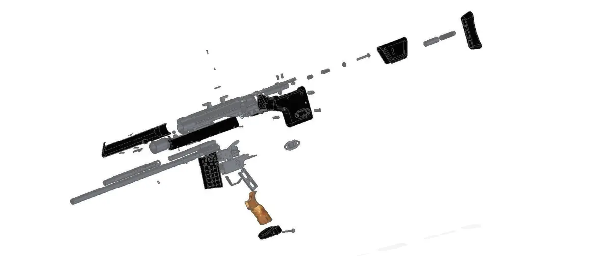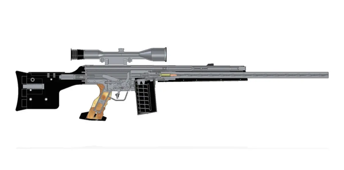 Full assembled model of german sniper rifle PSG-1 maded om infantry rifle G3 base and 7,62X51 NATO bullet.