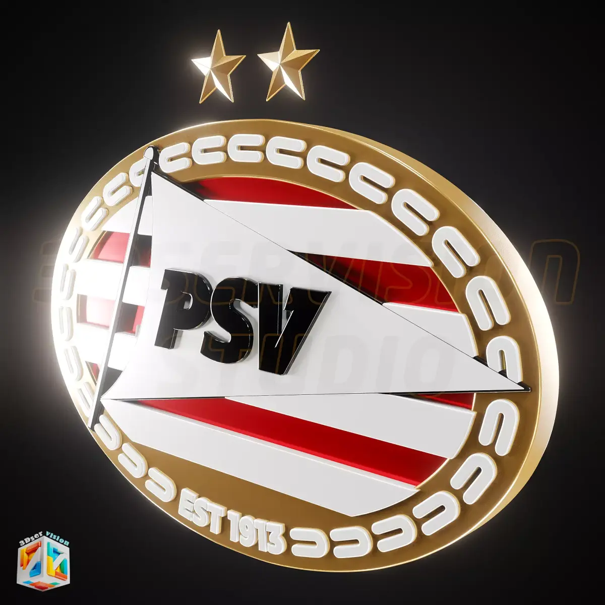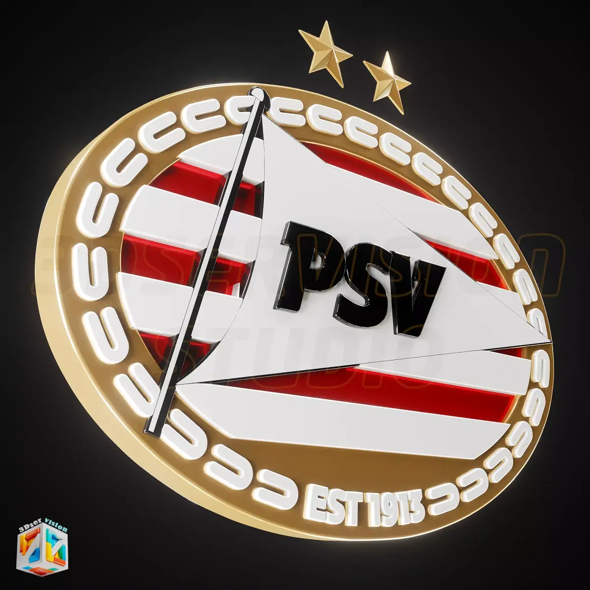 This 3D sports logo emblem comes in various versions: a high-detail PBR cinematic model for rendering and a 3D-printable STL version optimized for clean, support-friendly printing.