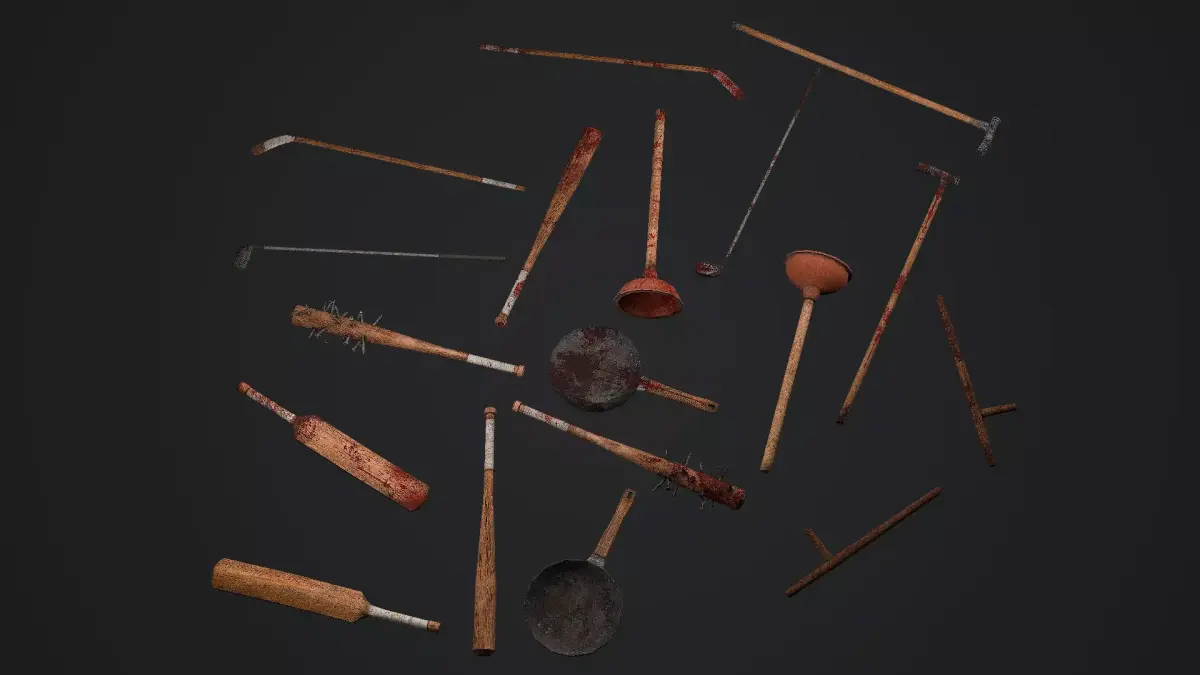 This pack features a wide variety of melee weapons, tools, and unique weapons designed with a retro, pixelated, low-poly aesthetic.