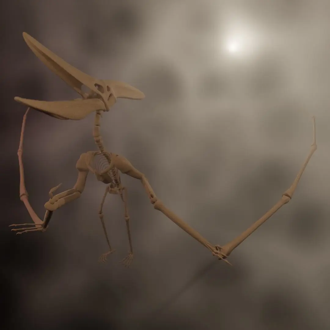 Rigged and animated model of the complete skeleton of a Pteranodon pterosaur. Animation shows flying animal. Modelling is based on anatomical drawings and mounted fossil replicas on display in natural history musea. Modelled, rigged and animated in Blender 2.8 (animation may not be realistic).