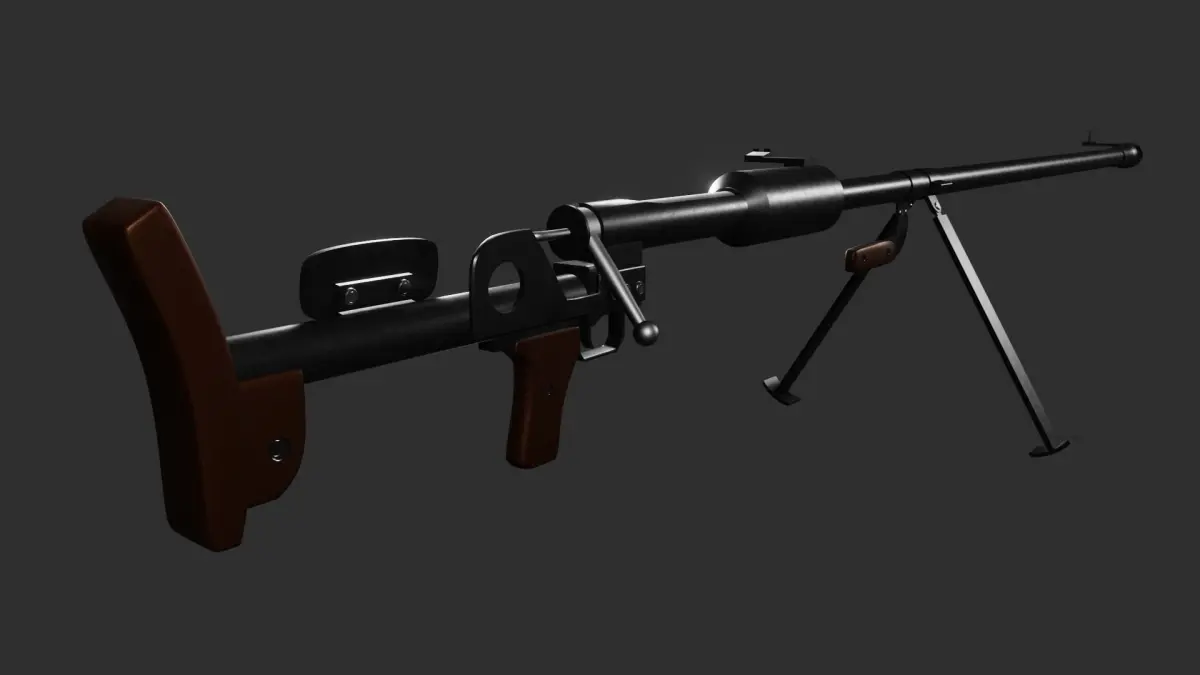 This is a 3D model PTRD Anti-Tank Rifle, this weapon is from the Soviet Union, designed in 1941 and this weapon was used in world war 2.