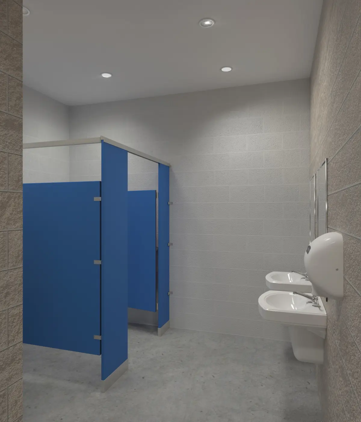 Interior Includes:*Toilets*Sinks*Faucet*Mirror*Urinal*Grab Bars*Sanitary Napkin Disposal*Toilet Paper Holder*Grab Bars*Toilet Seat Dispenser*Hand Dryer*Bathroom partitions*Light Fixtures