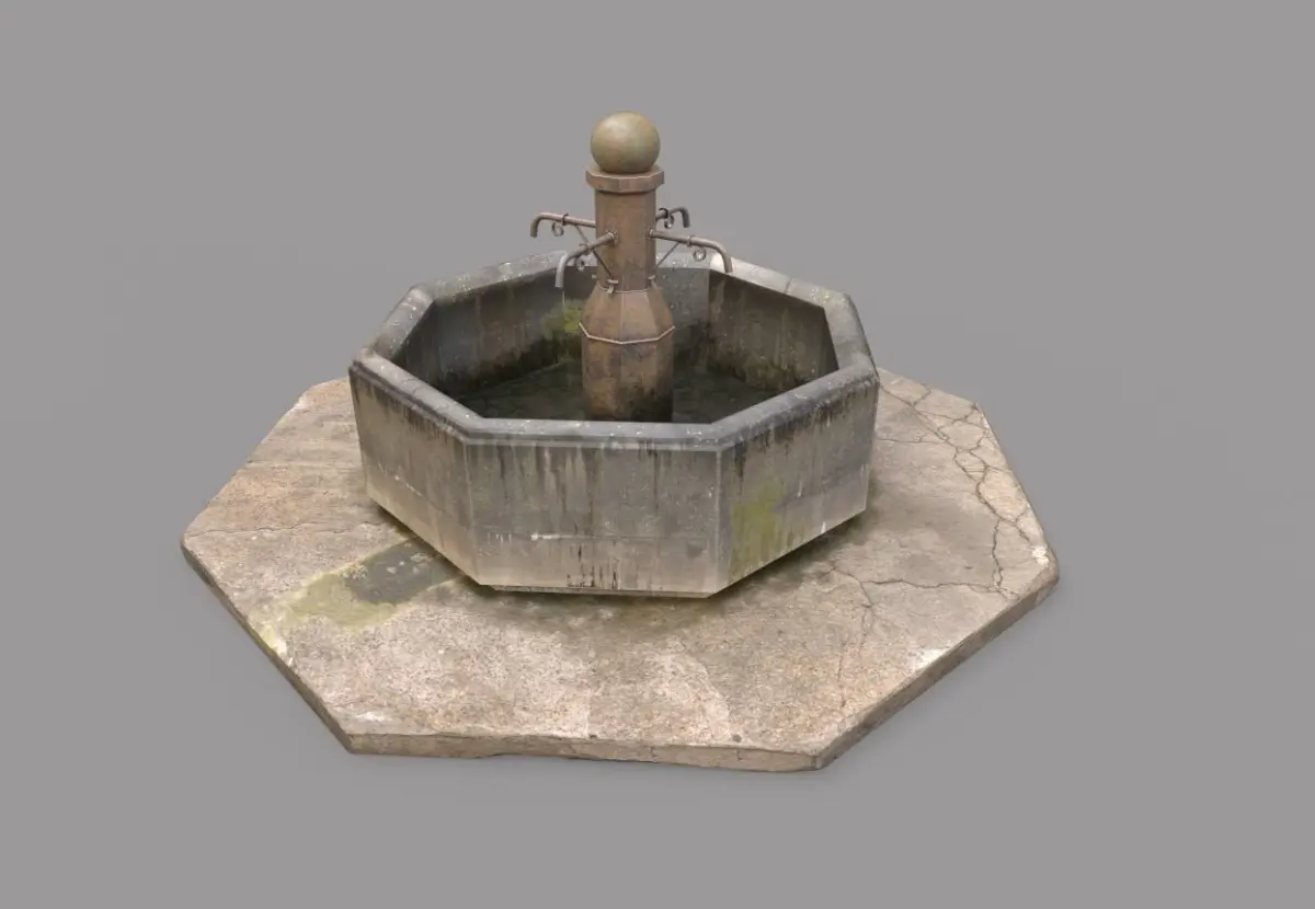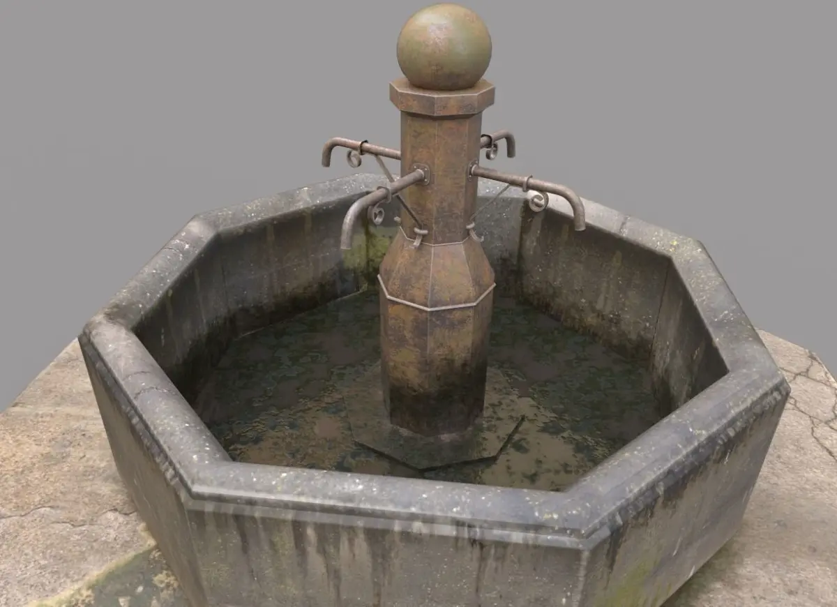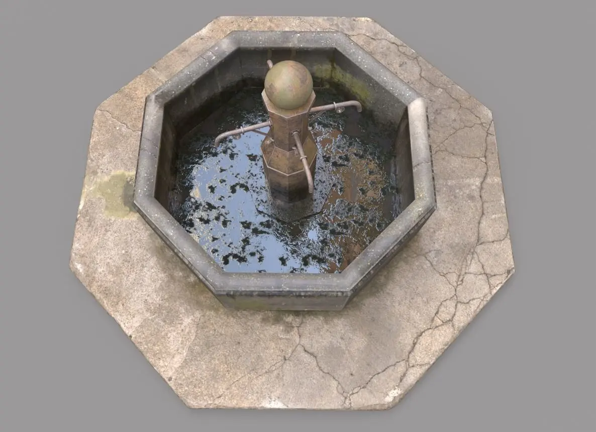 Model of public fountain .Model is very realistic. Model has 2 PBR material.Maps are diffuse-specular-glossiness-height and normal. Model's textures has two sizes; 4096x4096-2048x2048. All maps are PNG formats and unwrapped-non-overlapping.