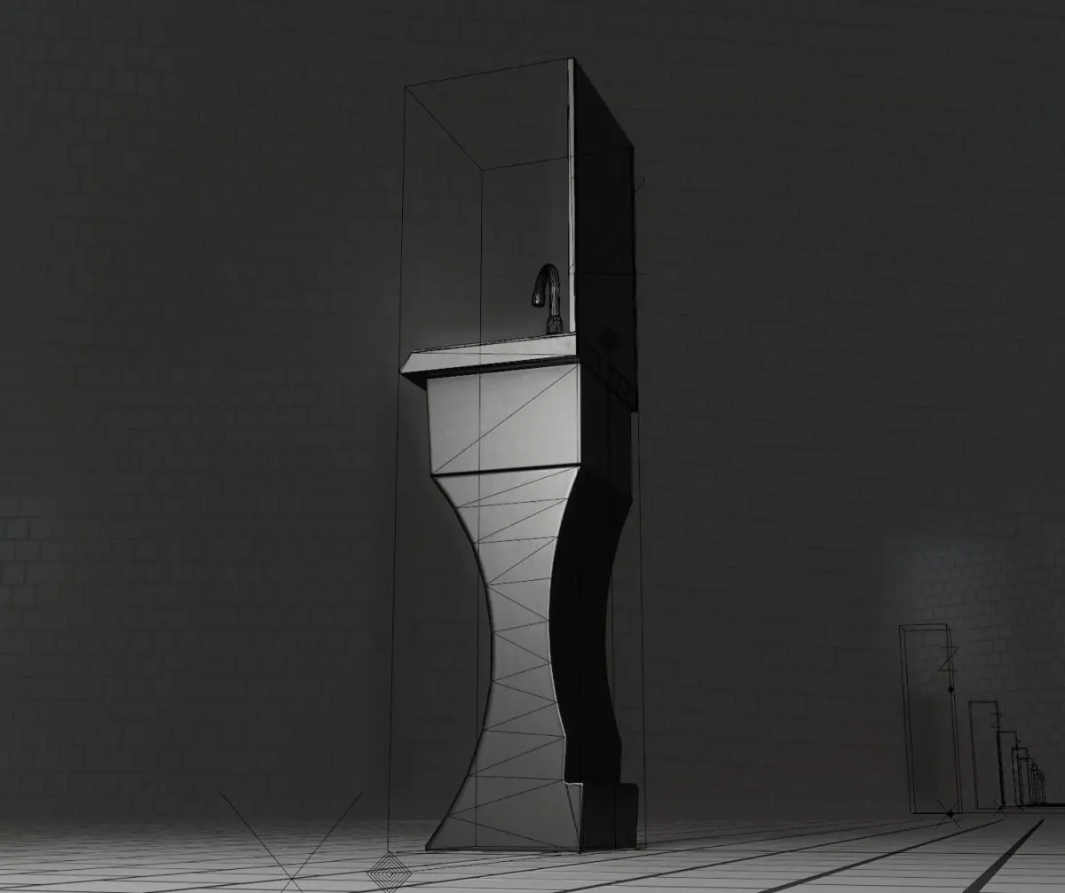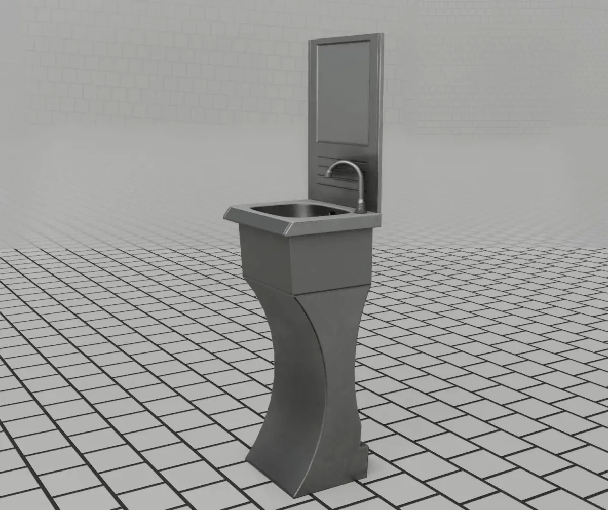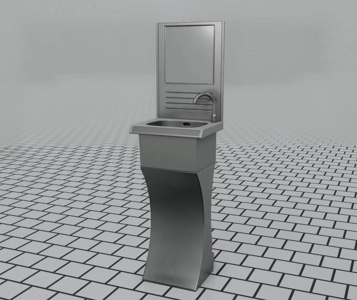 Low-poly and pbr-textured public metal sci-fi sink - 35 - with mirror.