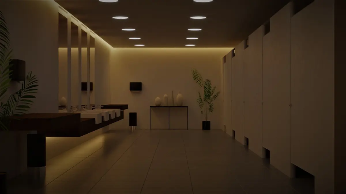 Public Restroom/toilet - High Quality. All lightings presets set. All render settings adjusted. Quick render for high quality Used high quality materials from corona materials. Used corona renderer. Corona lights. High quality output set into renderer