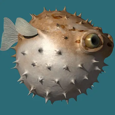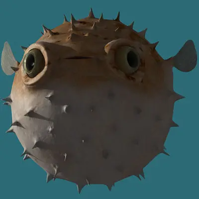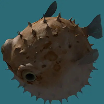 A small puffer fish. Rigged with Skin modifier. High-rez textures, nice animation cycle (without inflation/deflation, but with breathing). Lightning provided as seen in renders.Main body texture is 2048 x 1024.