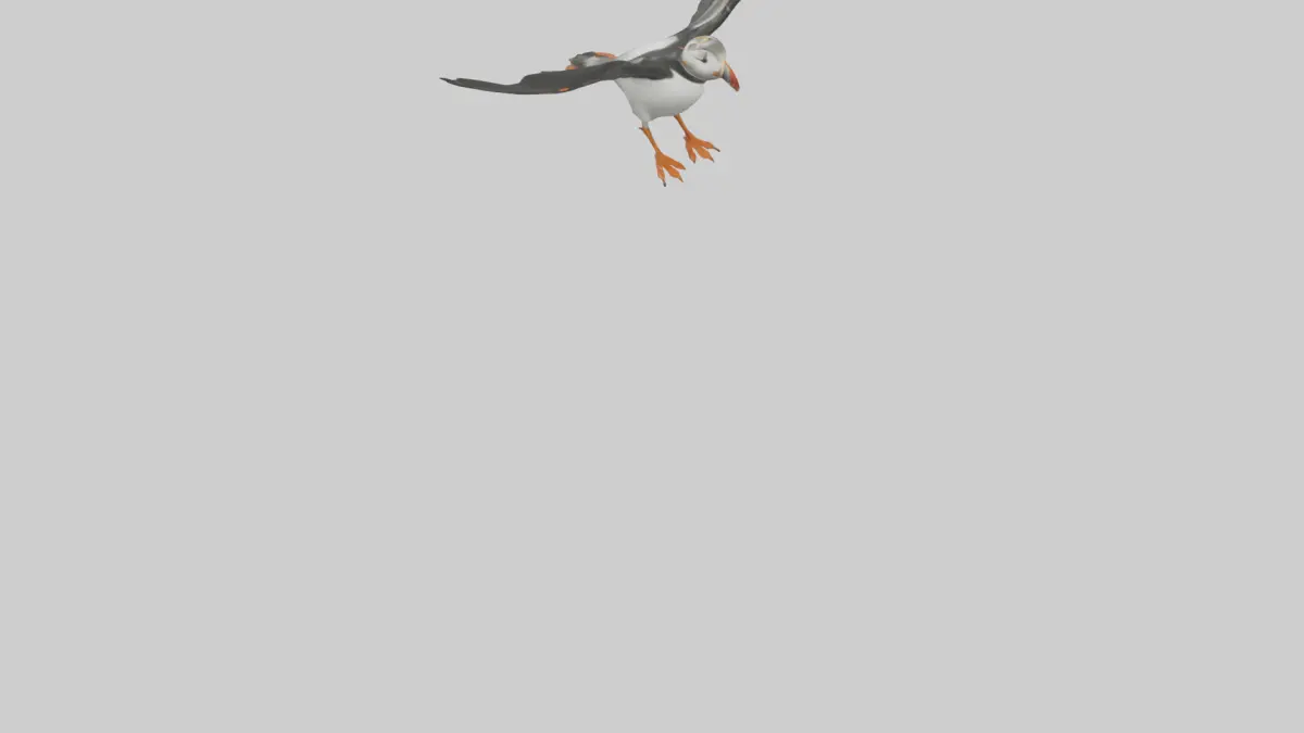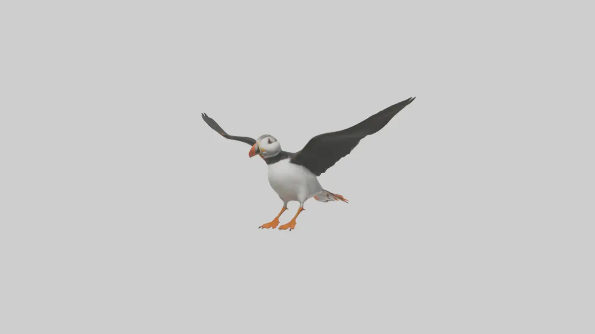 Keywords: puffin, flying puffin, 3D bird model, wildlife 3D, animation model, game asset, educational 3D.