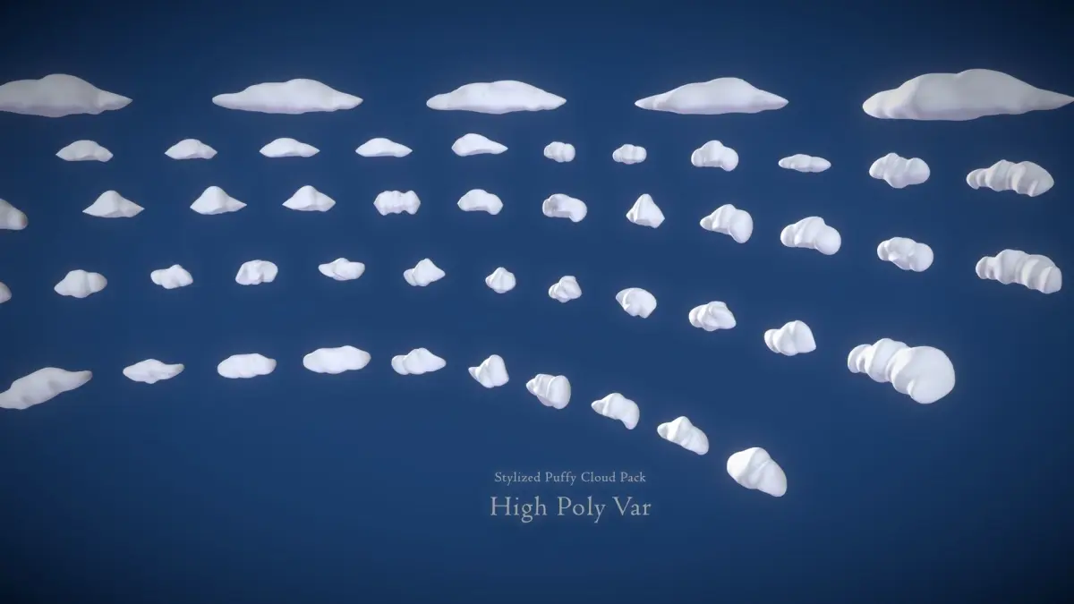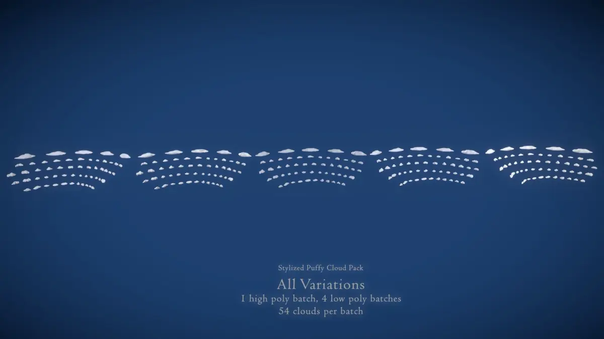 - * 5 batches/variations total. Each has 54 Clouds total [Mostly about 5 unique meshes, all others are variations in shape/form]