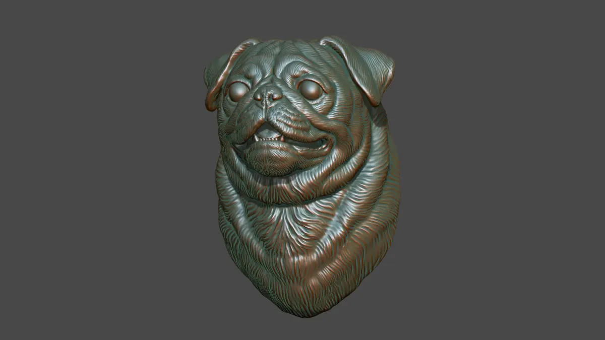 500K STL, OBJ triangulated mesh, Pug bust is cut off from the bottom