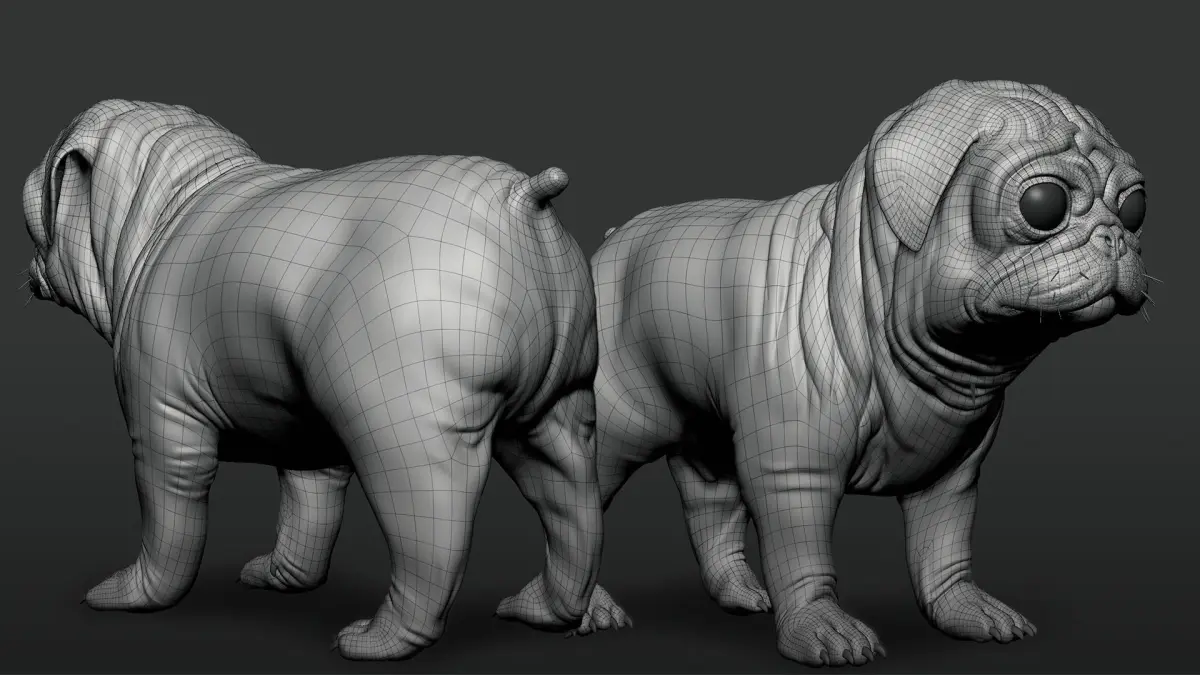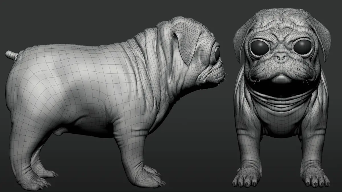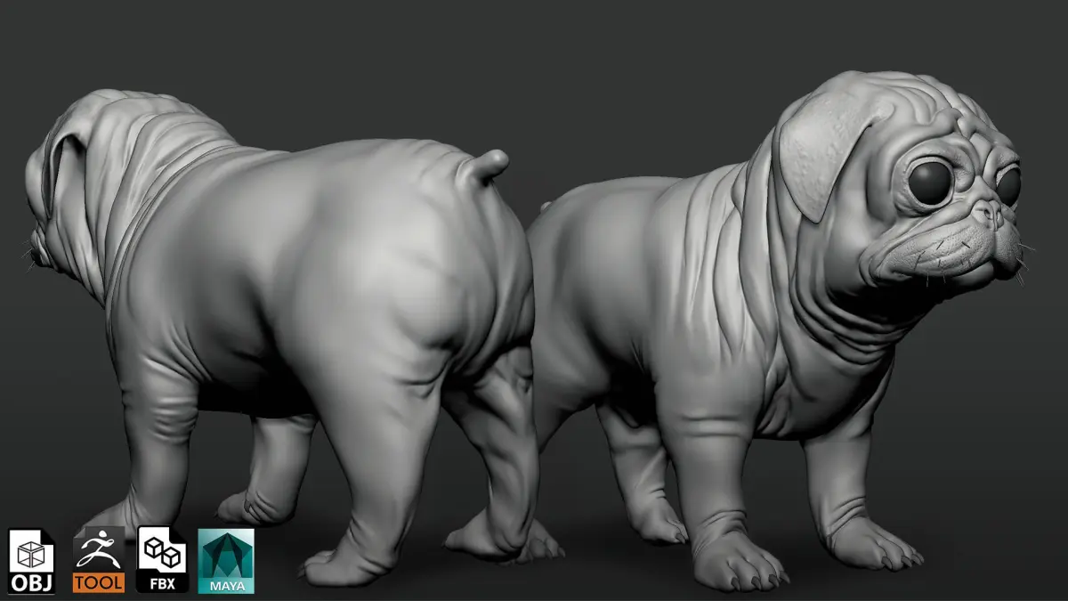 Pug model done in zbrush, retopo in maya with proper mesh flow and Uv unwrap is done with no over lapping.