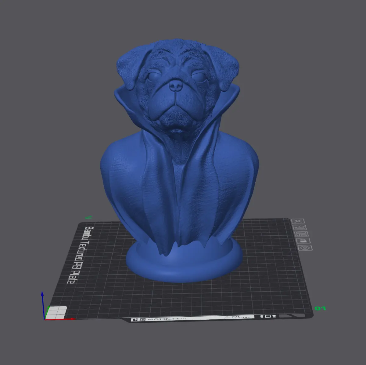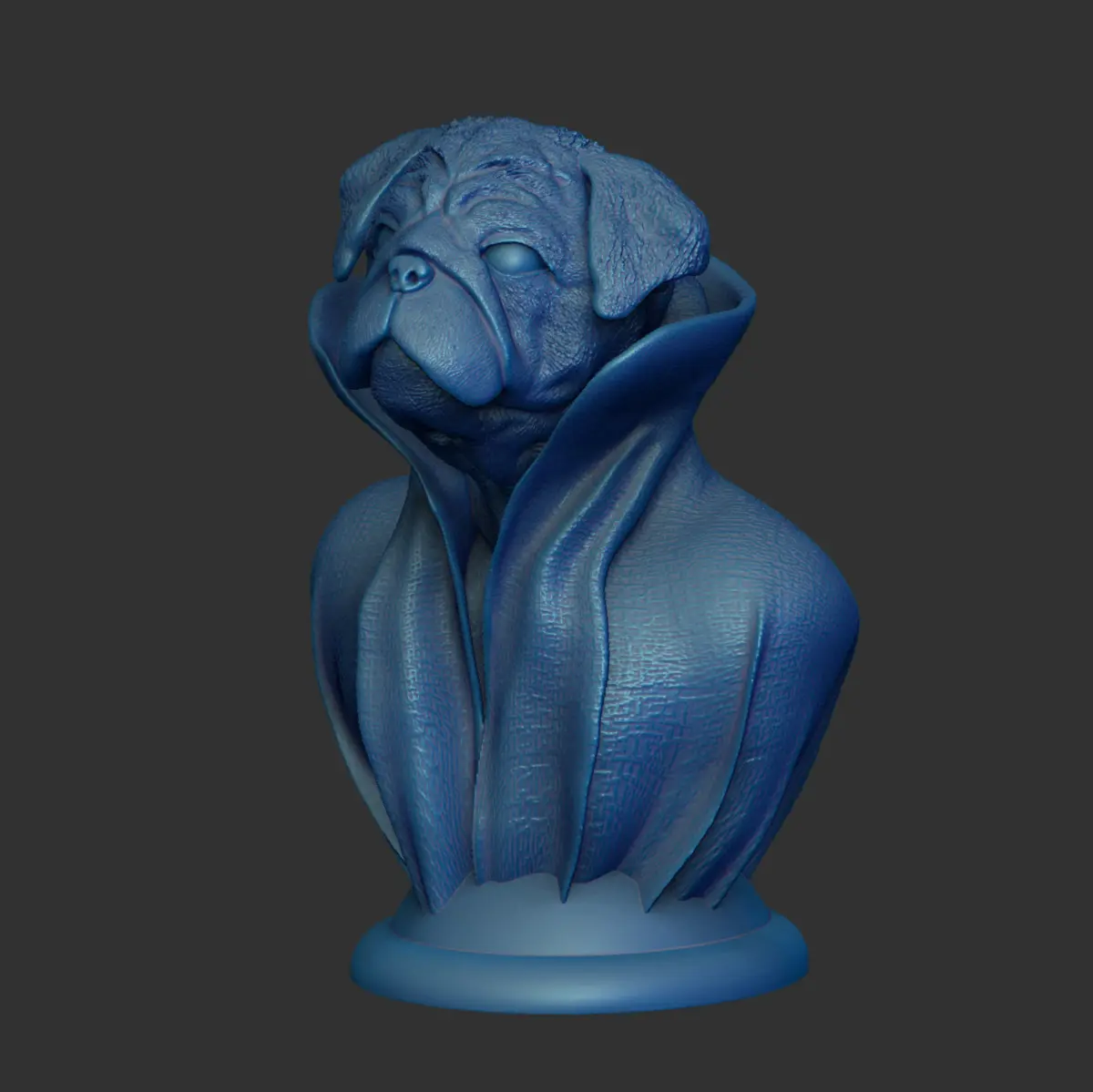 *Pug - with Cape Collar on PedestalCut (large format and whole)3D Model FileHigh-Polygon*