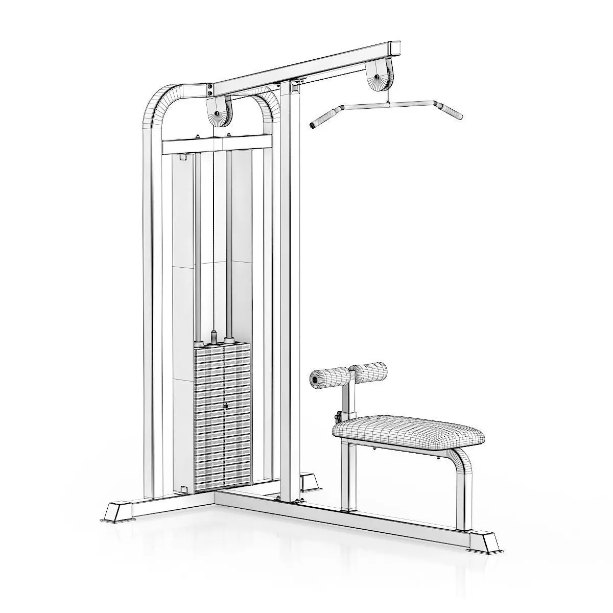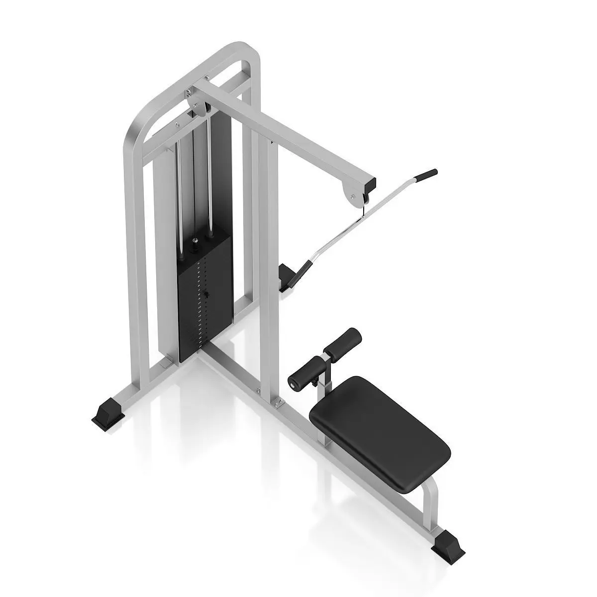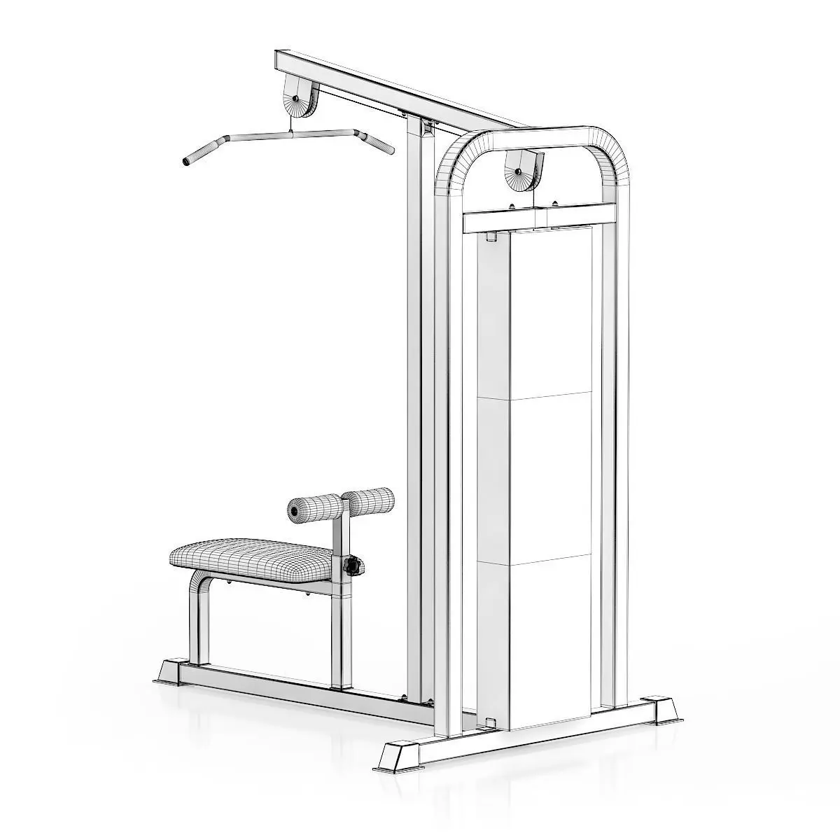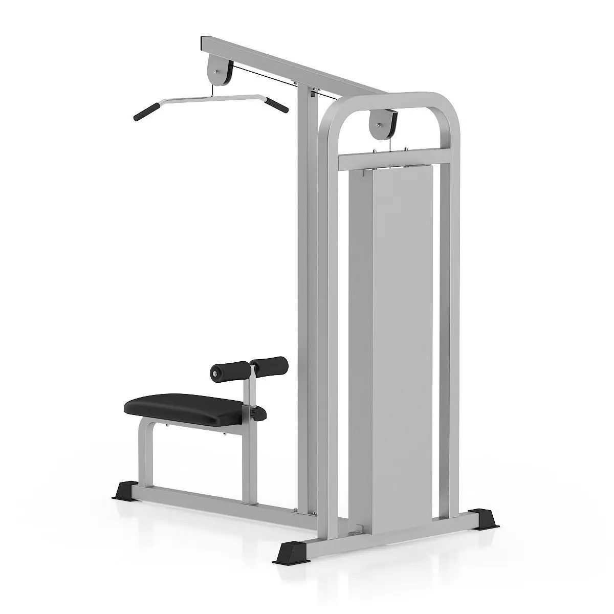 3d model of black and silver pull-down gym machine.