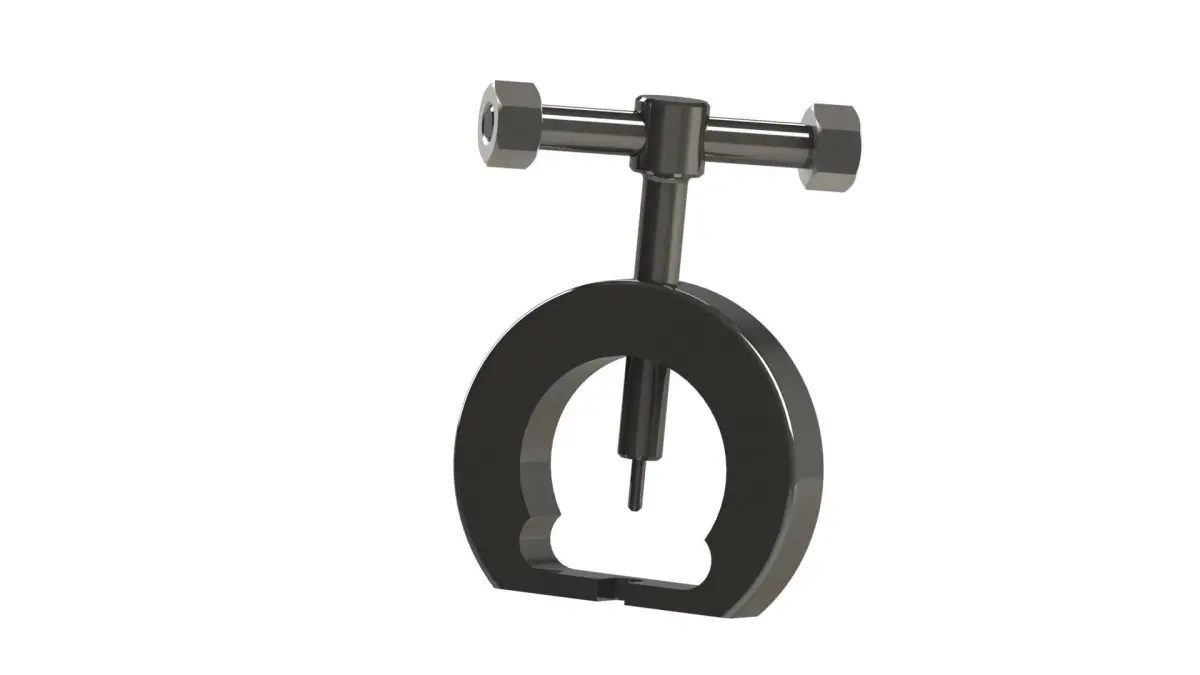 This 3D model represents a Puller Remover, which is a tool used to remove bonded or welded joints. It consists of two blades that are placed on the joint and then turned to disengage it.