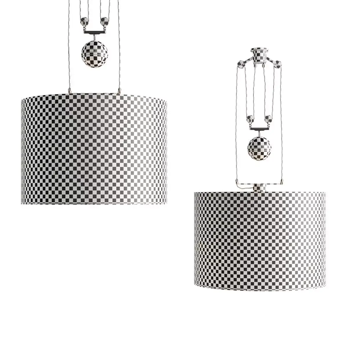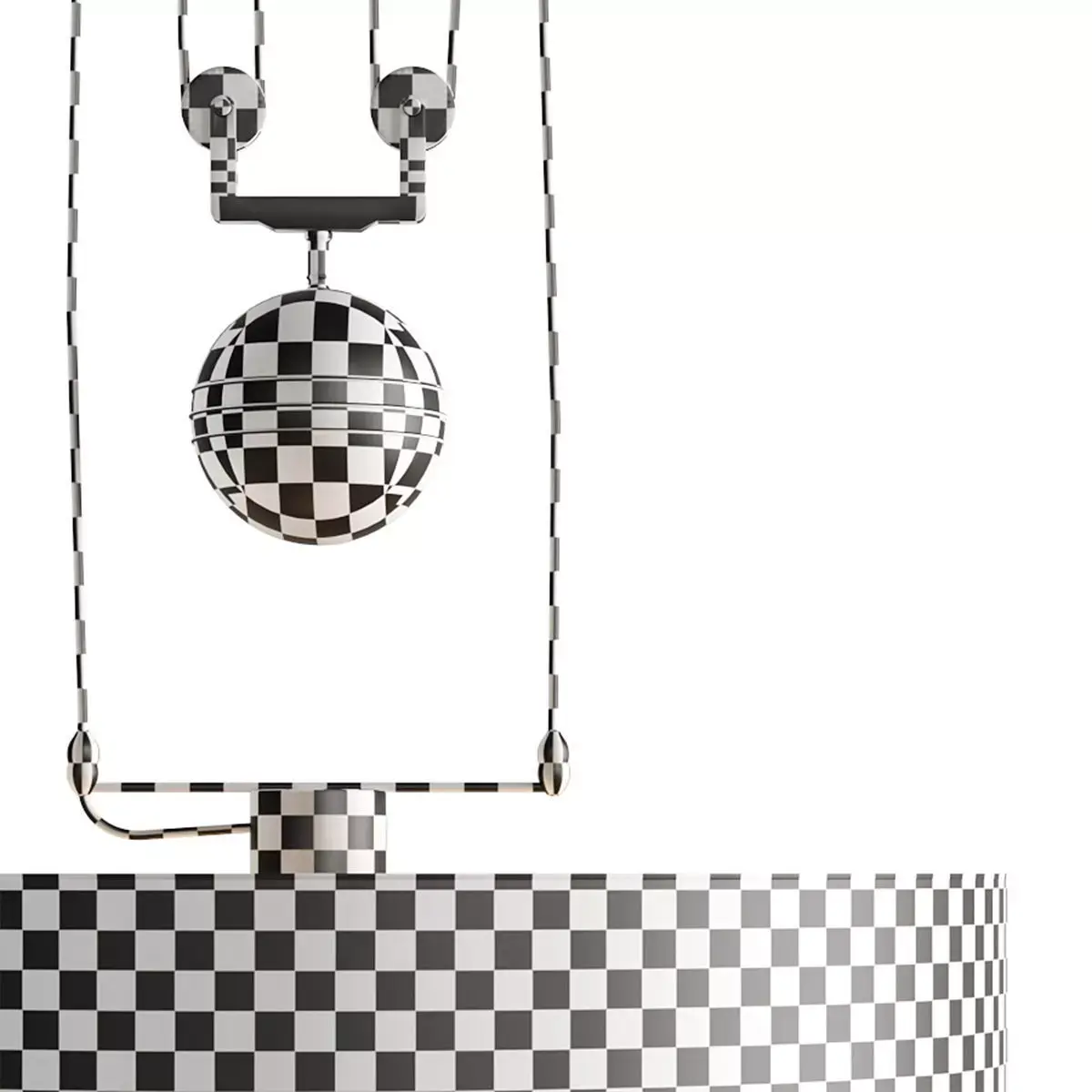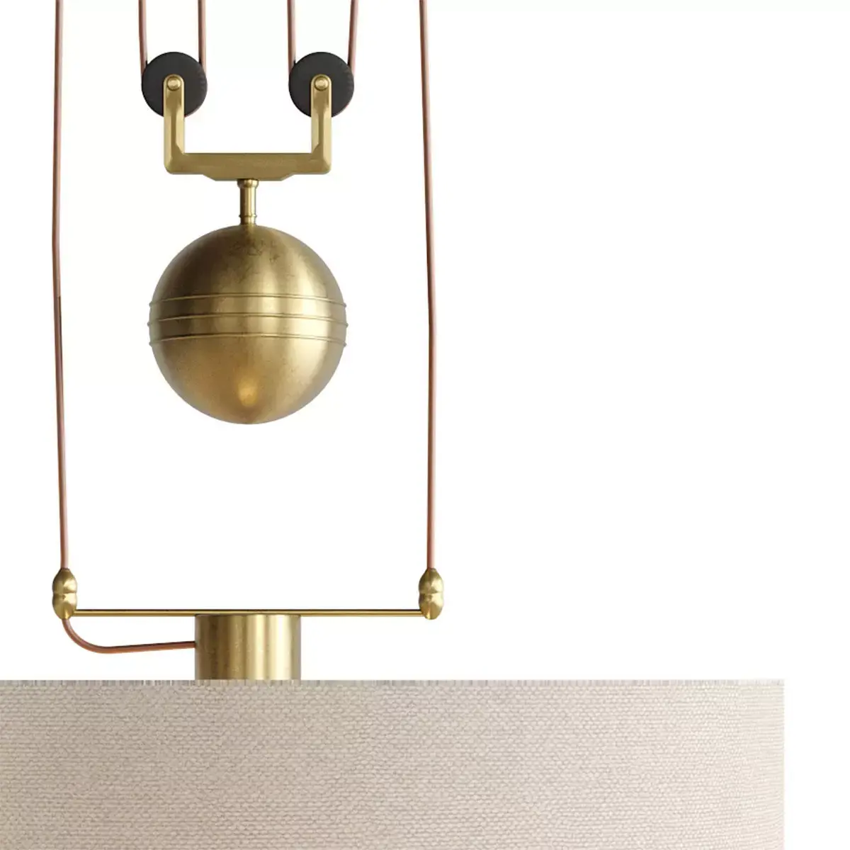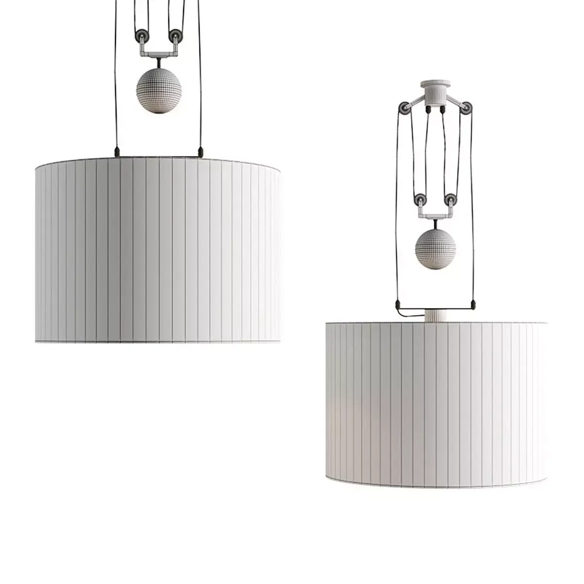 Professional 3D model of a classic rise and fall pulley pendant light. This elegant ceiling fixture features a functional counterweight system, perfect for luxury interior visualizations.
