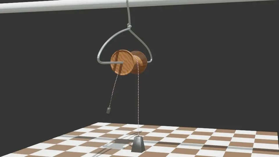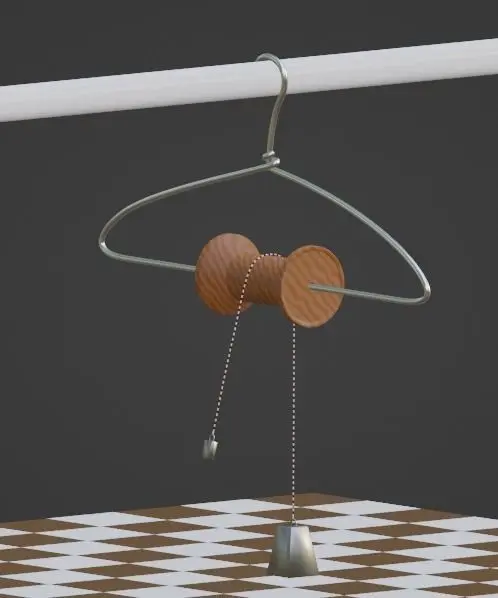 Ejercicio pedagógico en el que sustituimos una polea real por un carrete de hilo de coser y una percha. Cumple la misma función que una polea industrial, pero es más fácil de construir. La animación se ha realizado por medio de una curva bezier.Pedagogical exercise in which we replace a real pulley with a spool of sewing thread and a hanger. It fulfills the same function as an industrial pulley, but it is easier to build. The animation has been done by means of a bezier curve.Exercice pédagogique dans lequel on remplace une vraie poulie par une bobine de fil à coudre et un cintre. Elle remplit la même fonction qu'une poulie industrielle, mais elle est plus facile à construire. L'animation a été réalisée au moyen d'une courbe de Bézier.