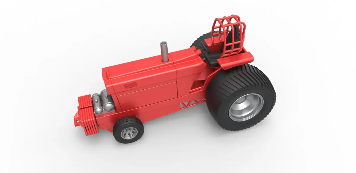 The model consists of parts: Body part 1-4, Driver protection, Engine air tube, Engine exhaust tube, Engine, Exhaust pipe, Frame front part, Frame rear part, Front grid, Front insert, Front rims, Front tires, Left plate, Rear rims, Rear tires, Right plate, Seat, Steering wheel, Tanks, Weights.