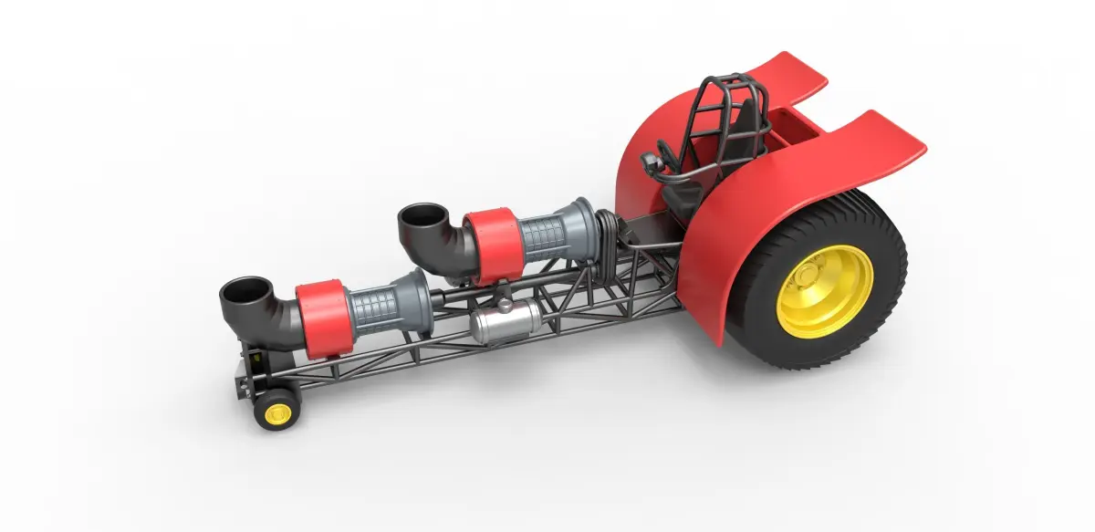 The model consists of parts: Body, Engine parts 1-3, Front rims, Front tires, Rear rims, Rear tires, Seat, Shell, Steering wheel, Tanks.