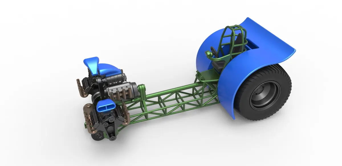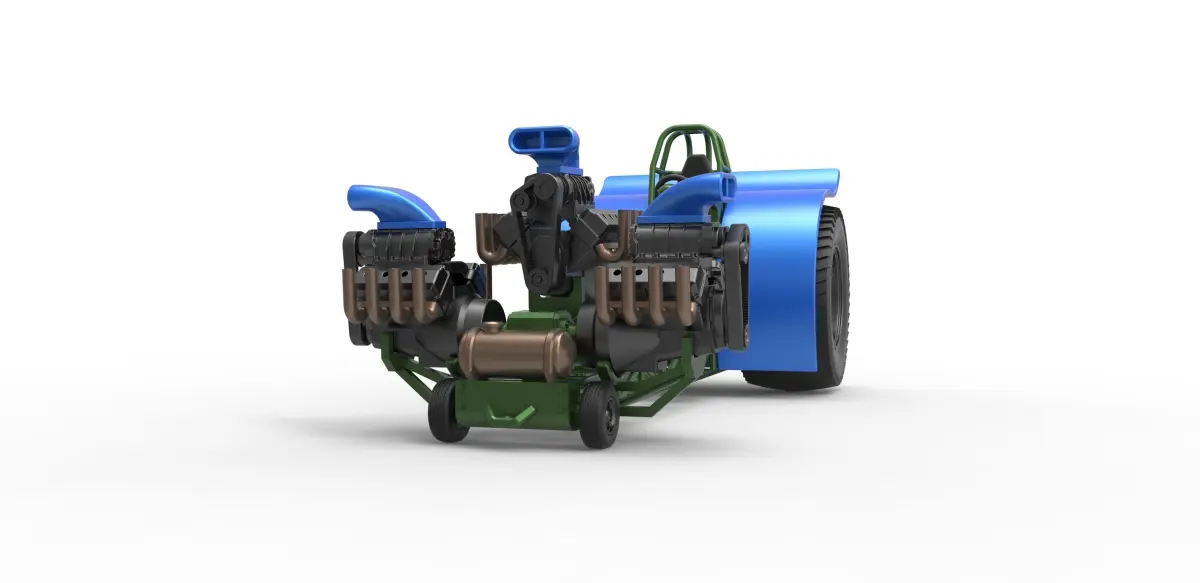 The model consists of parts: Air intakes, Body, Engines, Exhaust pipes, Front rims, Front tires, Rear rims, Rear tires, Seat, Shell, Steering wheel, Tank.