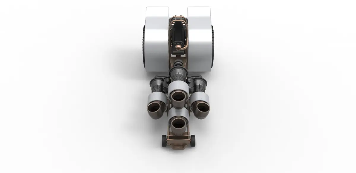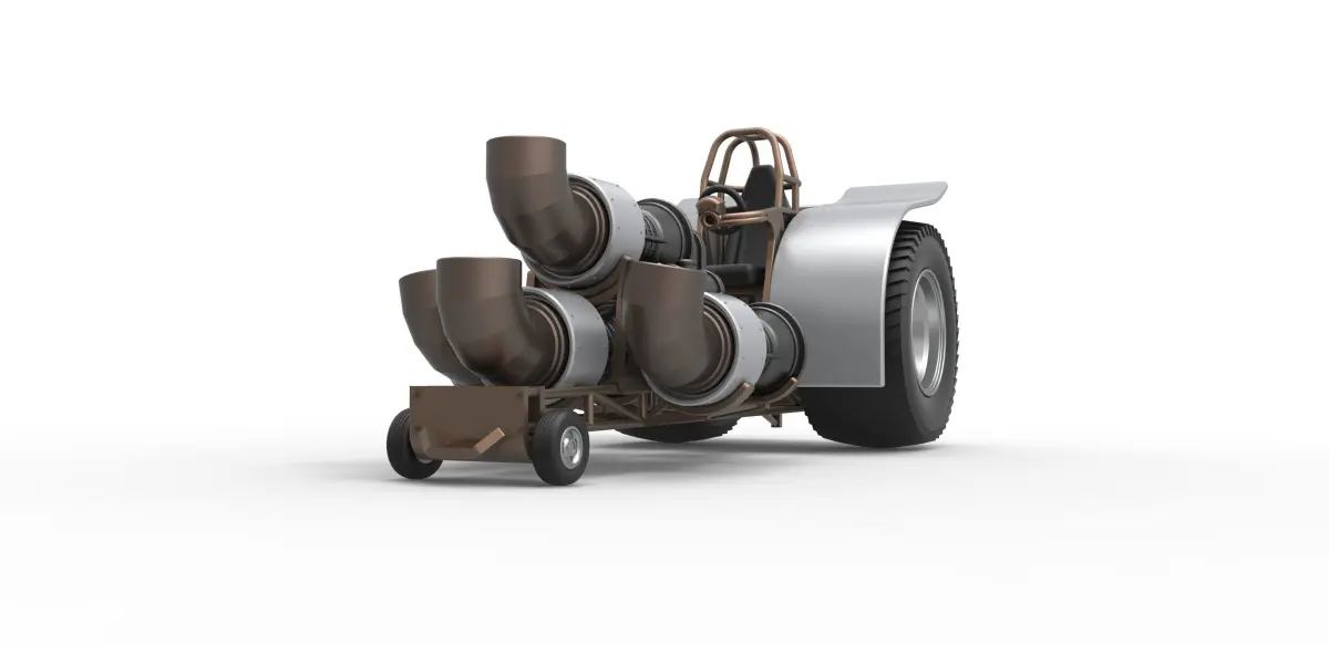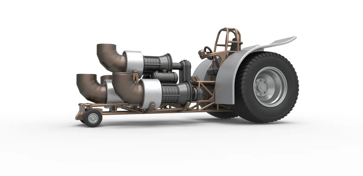 The model consists of parts: Body, Engine parts 1-3, Front rims, Front tires, Rear rims, Rear tires, Reductor, Seat, Shell, Stand, Steering wheel, Tanks.