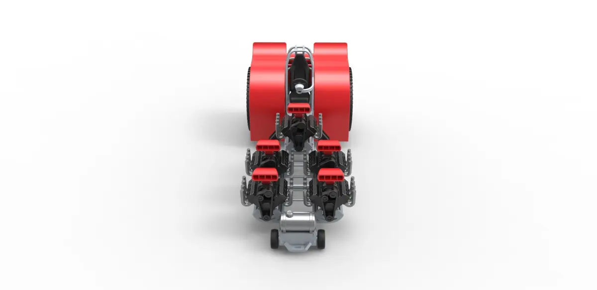 The model consists of parts: Air intakes, Body, Engine, Exhaust pipes, Front rims, Front tires, Rear rims, Rear tires, Reductor, Seat, Shell, Spacer, Steering wheel, Tank.