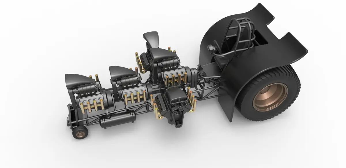 The model consists of parts: Air intakes, Body, Engines, Exhaust pipes, Front rims, Front tires, Rear rims, Rear tires, Seat, Shell, Steering wheel, Tanks.