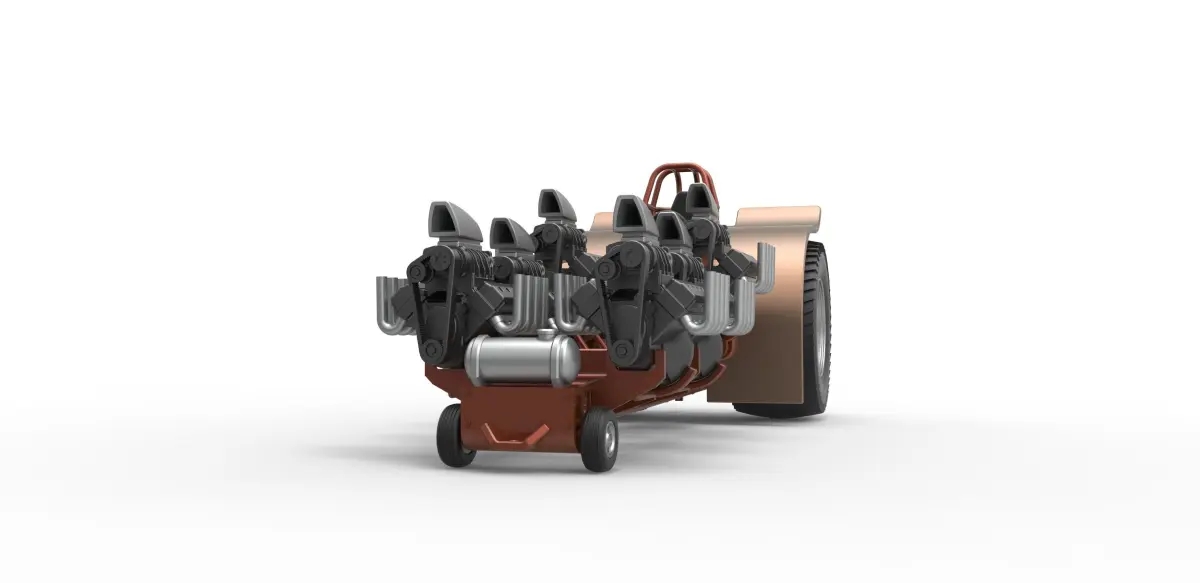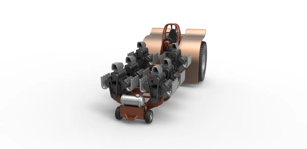 The model consists of parts: Air intakes, Body, Engines, Exhaust pipes, Front rims, Front tires, Rear rims, Rear tires, Seat, Shell, Spacer, Steering wheel, Tank.